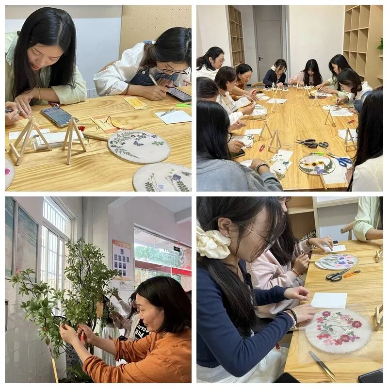 师生们动手尝试制作压花团扇,一朵朵压花在师生们的巧手下仿佛被赋予了生命,共同构成了一幅幅寓意深刻的图案。这些图案不仅展现了祖国的自然之美,更寄托了师生们对祖国的深情厚谊和美好祝愿。