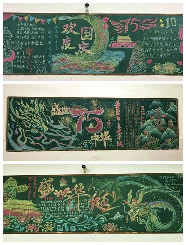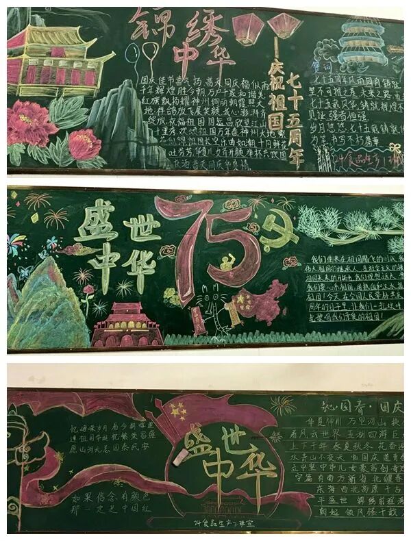 用主题黑板报回顾新中国成立至今波澜壮阔的历史征程,展现青年学子对祖国美好未来的憧憬与期许。