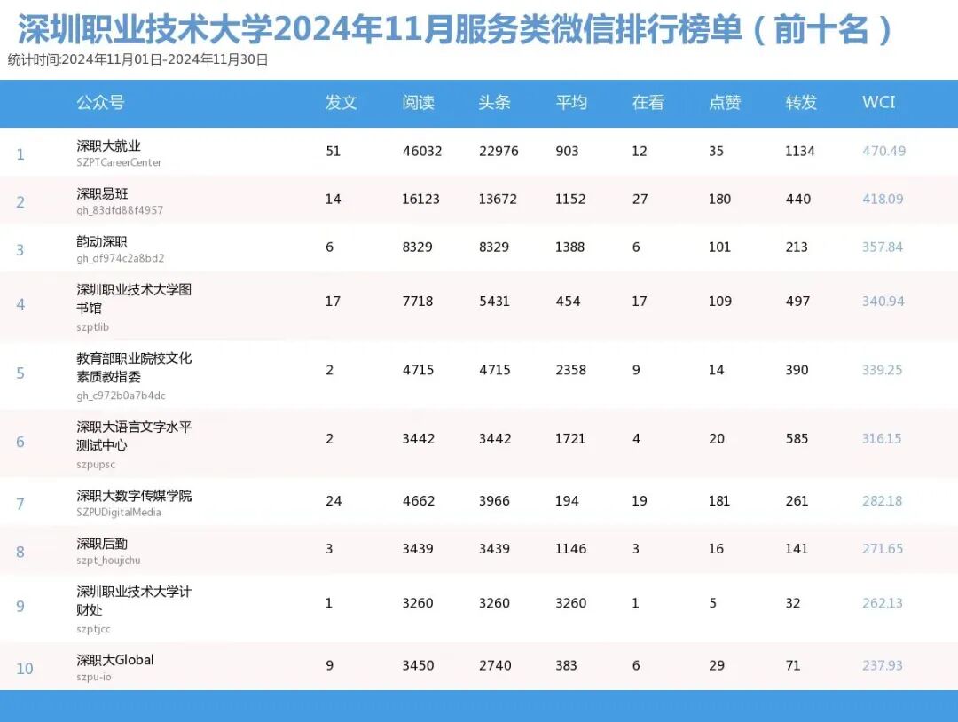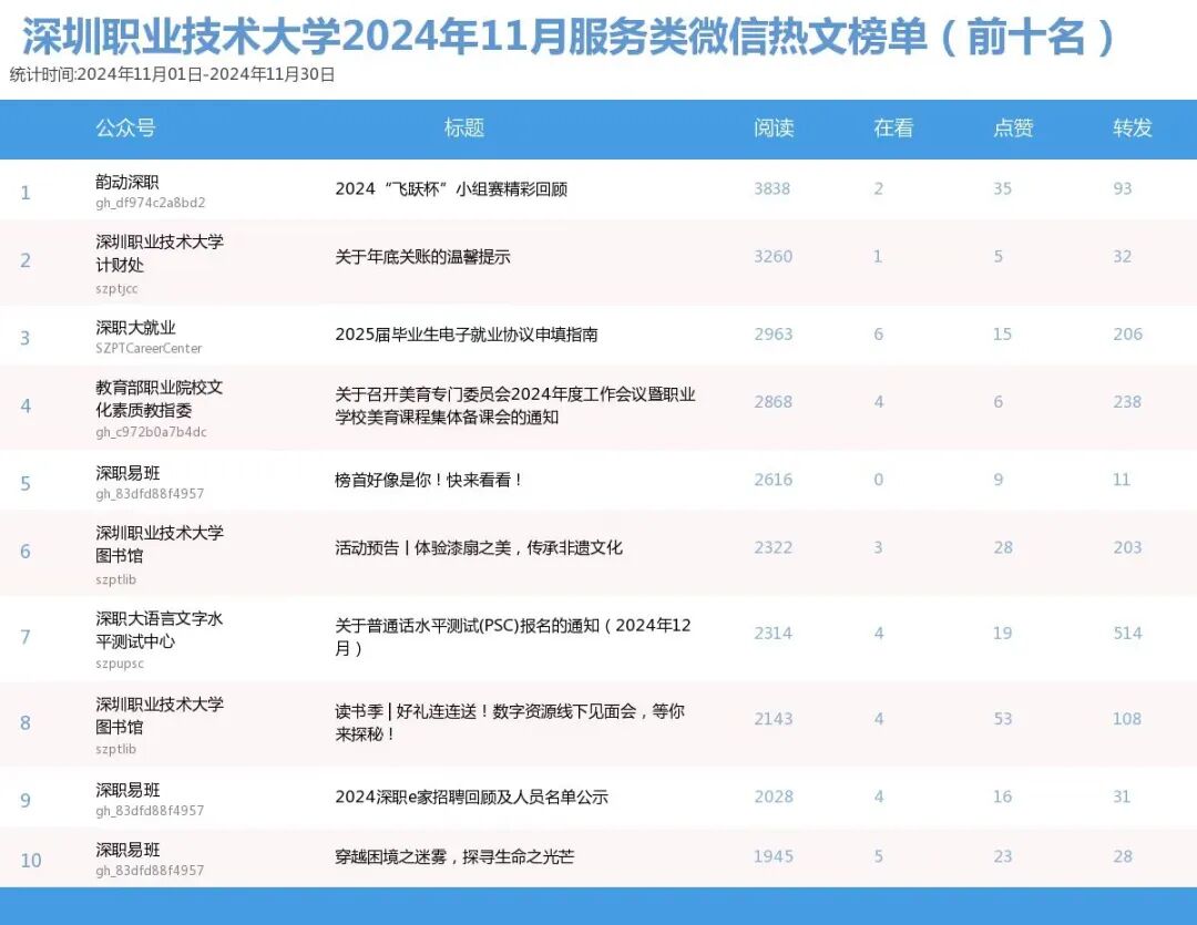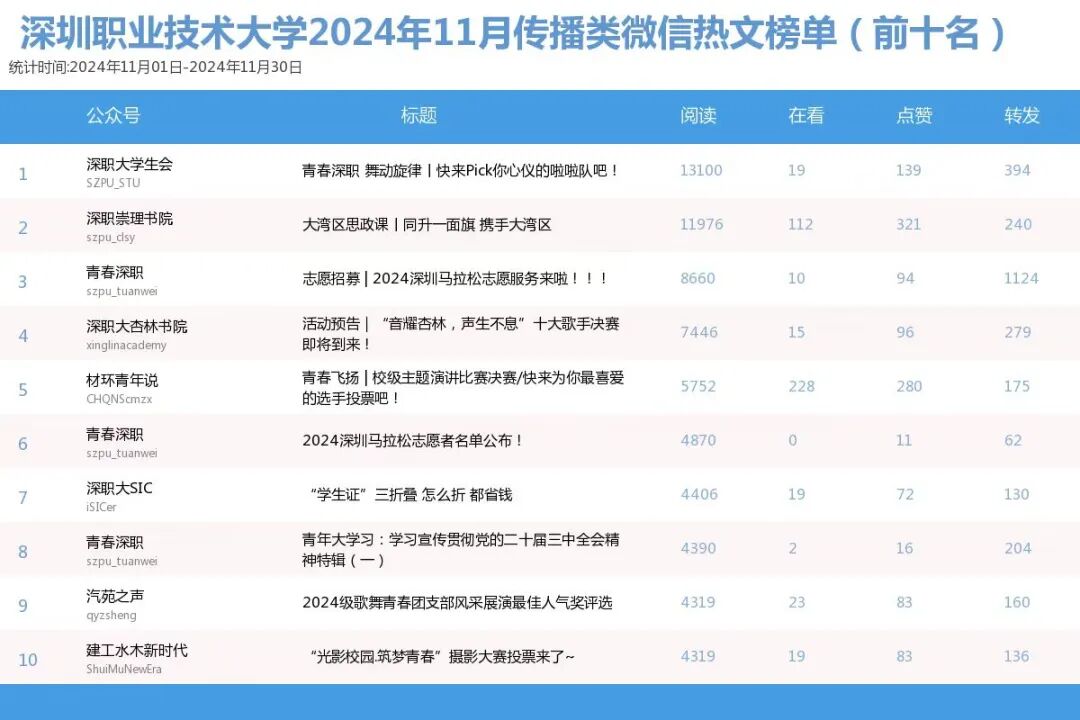 1. 本榜单数据由深圳职业技术大学融媒体大数据平台支持。