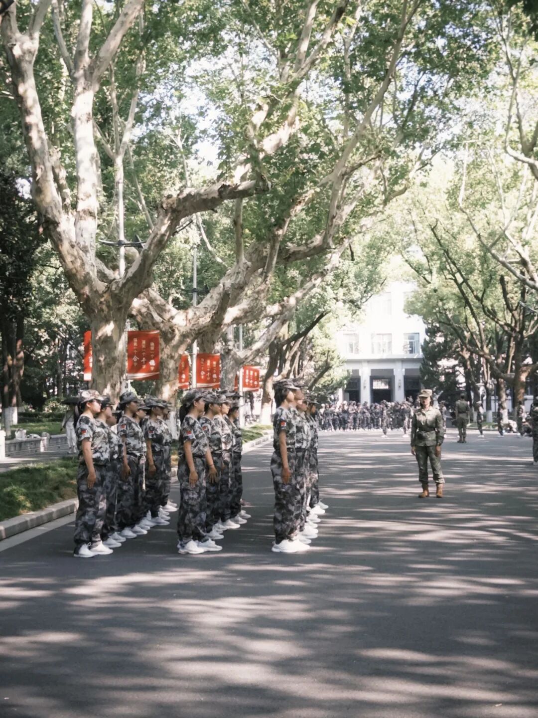 如果将“军训”一词具象化,我想,军训是齐唱《强军战歌》时内心热血沸腾的澎湃潮音,是在中大路骄阳下昂首挺胸肃站军姿时心底喷薄而出的豪迈自信,是梧桐树下休息时来自天南海北的热情问候,是一滴滴汗水蜿蜒滴落时的永不放弃……“格斗准备!”“杀!”“全体队友!”“杀!”一身迷彩戎装,青春光芒闪亮,盛开在南大的茵茵操场!“追风赶月莫停留,平芜尽处是春山。”愿军训后的你拥有金子般明亮的坚韧,永不回避命运对灵魂的拷问!