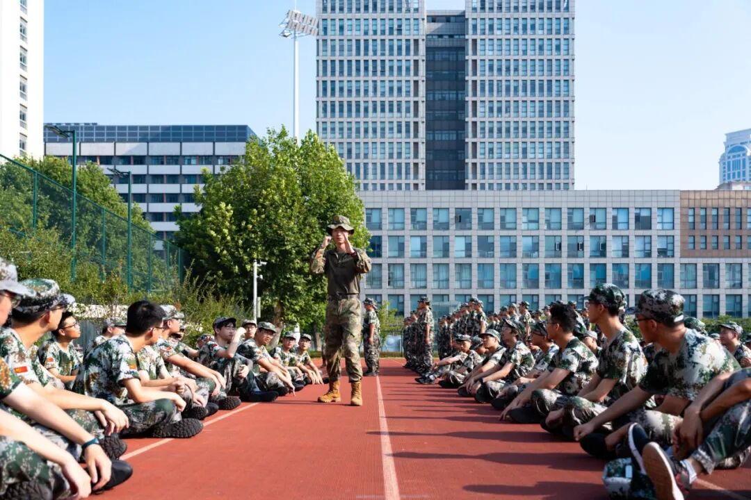 伴露而起,待辰而归。清晨,当头的烈日也阻挡不住同学们的朝气,身穿军训服,脚着作训靴,同学们昂首走向训练场。