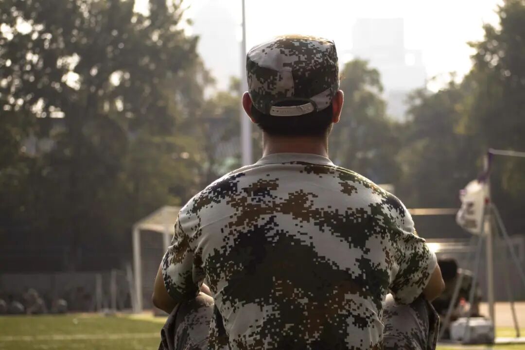 在一天一天的相处中,我渐渐发现了我们教官更为普通人的一面。他有着在我看来略显憨厚的笑容,真诚饱满,像傍晚的阳光,温和而坦诚。矮矮的个头,在和其他教官的对比中显得有些不起眼。他也不像我们五排旁边两个排的排长那样,总能妙语频出,逗得全排人员哄堂大笑,或者在休息时间和一大片同学们谈笑风生。大多数时候,他也只是在我们的集合点附近站着,偶尔和一两个同学搭上几句话。在我的眼里,他是一个有些笨拙的人,不太会活跃气氛,也不怎么会说俏皮话。可是他很真诚,有一种朴素的气质。我始终记得,他说“我在哪,你们就在哪,可以吧”。他向我们许诺,只要他出了操场,我们就放学,大家都鼓掌叫好。他就是这样,始终把自己和我们放在一起,一起休息,一起训练,共同进退。他总是关心我们很多,自己的劳累却从未提起。他总会在我们站军姿时关切地反复提醒我们身体不舒服不要硬撑着,要及时打报告,他却一直刻意隐藏训练一整天后沙哑的嗓音和说话时有些力不从心的疲惫,不让我们察觉。我们大多数人可能也的确没有注意到这些,只是在教官宣布解散时感叹终于结束了一天的疲惫,拿起包涌向出口。但其实回头看看,那个身材挺拔强壮的教官,也在解散时脱下教官的戎装,脸上露出一天的疲惫。训练场上他们是或严肃或诙谐的教官,训练场下他们其实是和我们一样的大学生,也会累也会苦恼的普通人。也许生活中他们和普通人的唯一区别就是,他们作为军人,需要更加注重自己的个人隐私,以至于我没有他们的联系方式,甚至是一张照片。他们就这样,借一场军训,走入我们的生活,又在军训结束后,不留痕迹地,渐渐淡出我们的视野。我想说:教官们,谢谢你们,你们辛苦了!