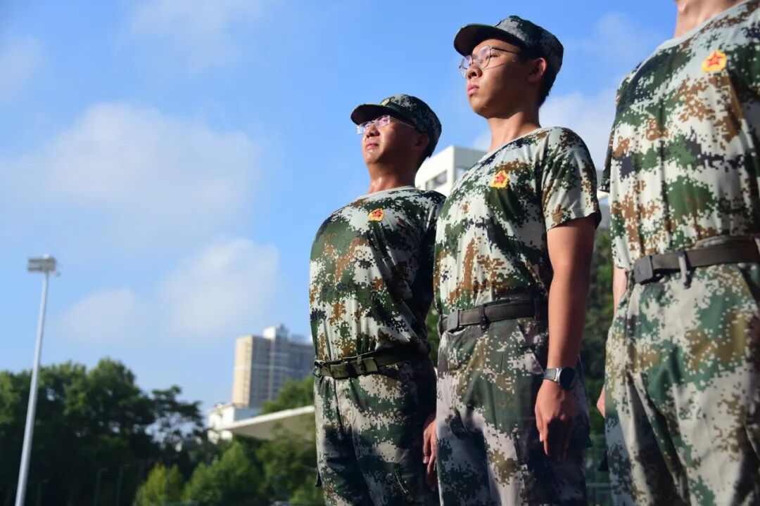 军训,是体能的考验,更是意志的磨炼。戎装在身,道不尽鸿鹄报国志;国旗刻肩,担得起中华少年强。挥洒的汗水,是对拳拳爱国心的洗礼;灼热的脸庞,是对铮铮少年身的见证。我们将生命的热情融于身心,仰望先辈的荣光,聆听使命的召唤,扛起时代的责任,踏向光明的远方。使命与热血,筑基与淬炼,汗水与希望。巾帼不惧烈日,少年笑对骄阳。