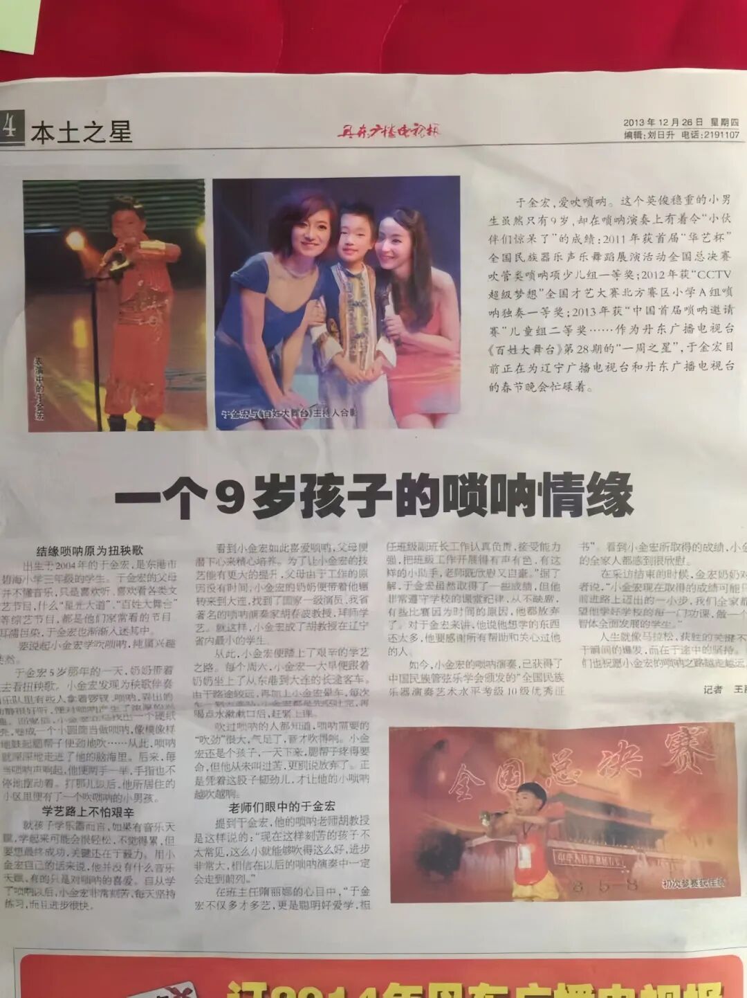 相信“多才多艺”的于金宏同学未来能实现弘扬民乐的小目标