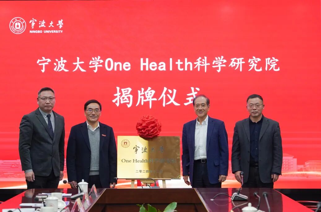 讲座后,韩启德院士出席了在宁大召开的One Health座谈交流会,并为学校One Health的研究方向和学科发展进行了精准把脉,提出了宝贵的建议。他希望宁波大学聚焦研究方向,围绕宁波滨海城市的特点,开展人类健康、动物健康、环境健康三者同一健康的研究,做出宁波大学的特色。会上还举行了宁波大学One Health科学研究院揭牌仪式,韩启德院士和蔡荣根校长共同为研究院揭牌。宁波市政协副主席刘毅,宁波市投资促进局局长、九三学社宁波市委会主委张立央 ,宁大副校长戴世勋出席会议。