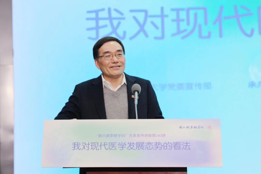 讲座中,韩启德院士从医学的内涵与学科交叉、医学研究模式、还原论认知途径、循证医学和精准医学、疾病的双重负担、预防的地位、癌症的早发现早治疗、数字医学与智慧医疗、医学与社会的关系、回归医学初衷等十个方面,介绍了当代医学的发展态势。