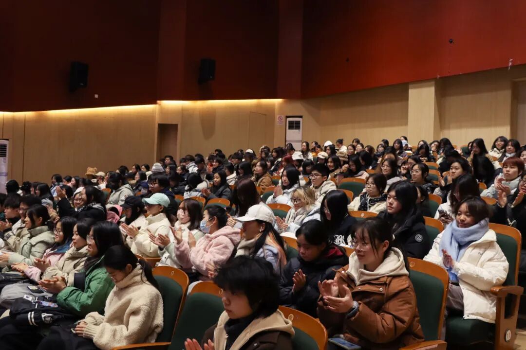 讲座中,袁明教授列举了北大优秀学子的事迹,为在场师生讲述了有勇气、有智慧、有担当的当代中国青年走向世界的故事。她勉励青年学子,应当扎根中华文化根基,以世界的视野和开放的胸怀,理解国家命运与人类命运共同体的联系。