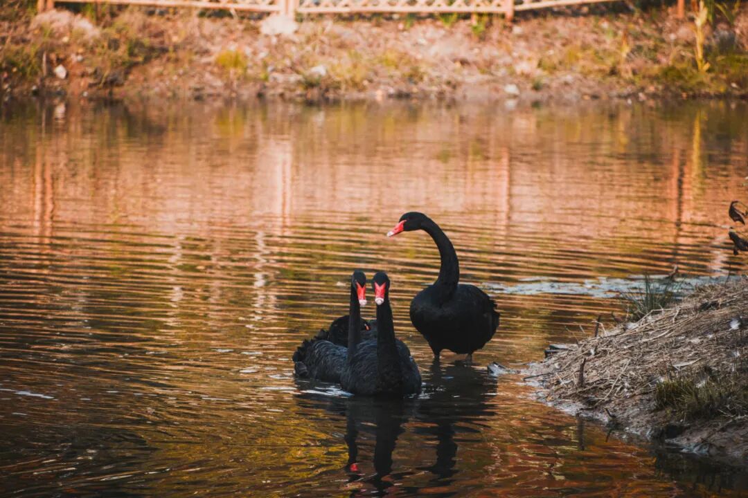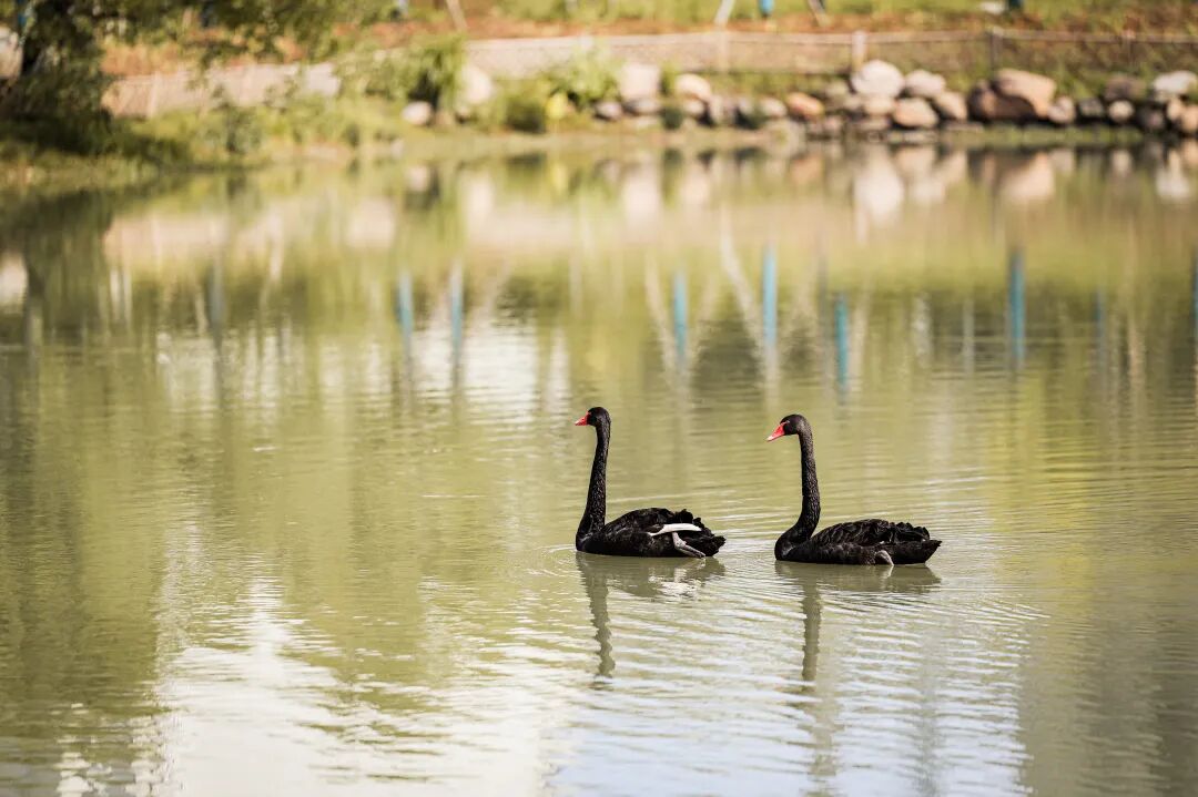 黑天鹅悠闲地拂起水波