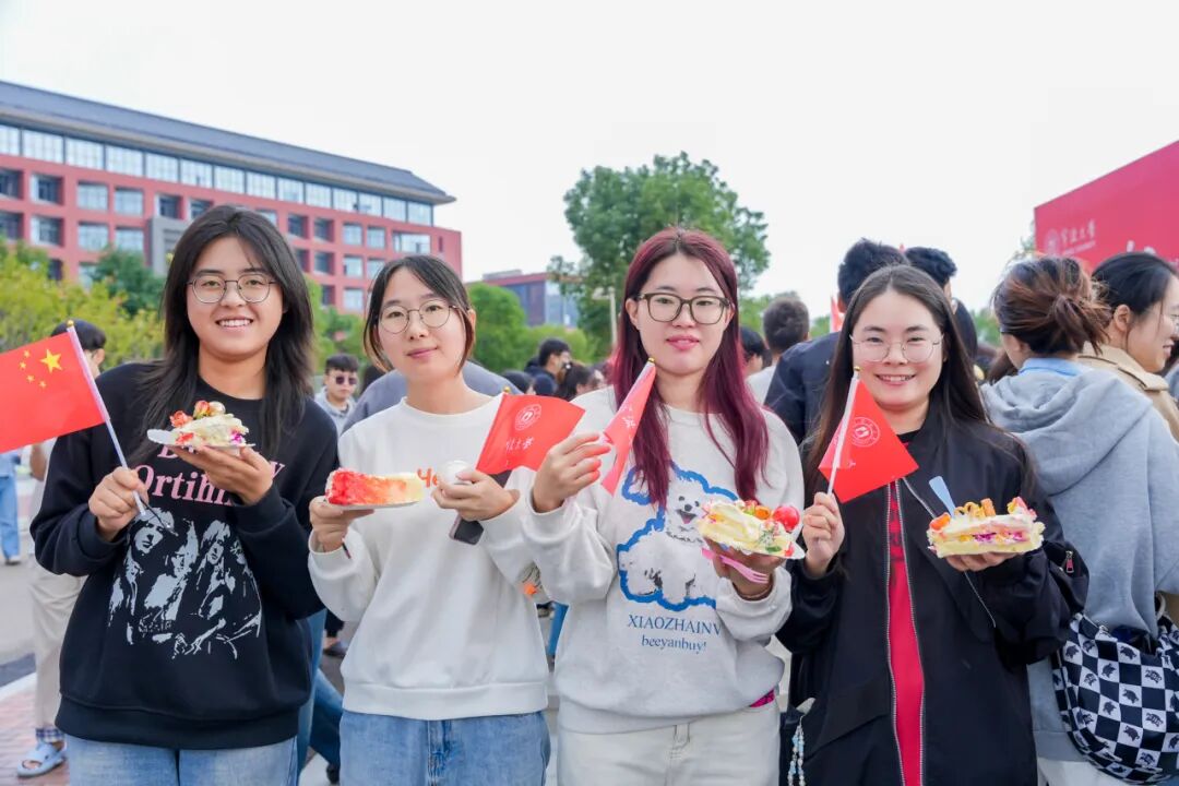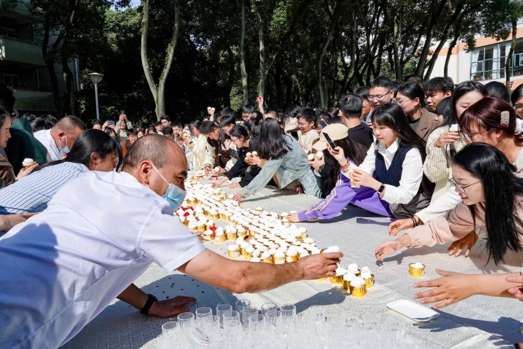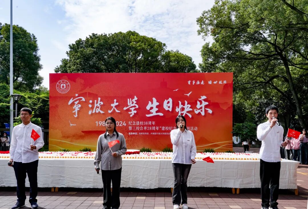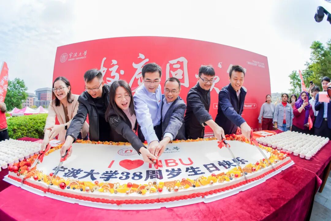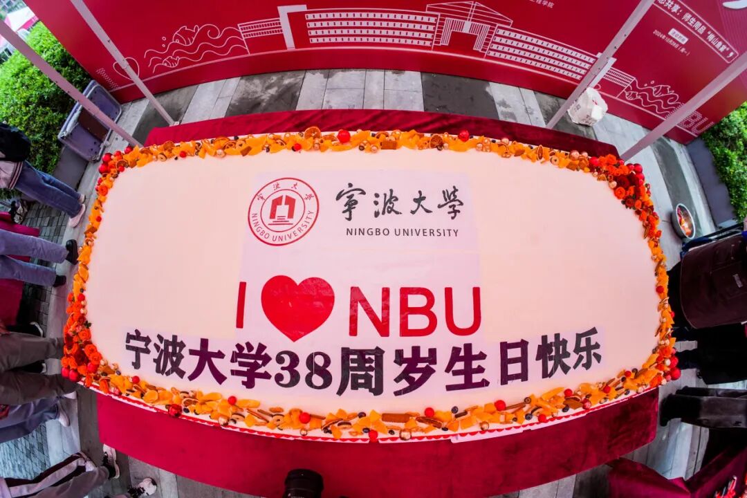 走进现场,由后勤餐饮服务中心师傅现场制作的3800只蛋糕组成的蛋糕展台呈现在师生面前,大家纷纷在“I ♥NBU生日快乐(1986-2024)”的蛋糕展台前合影留念,并为宁大38岁生日送上祝福。