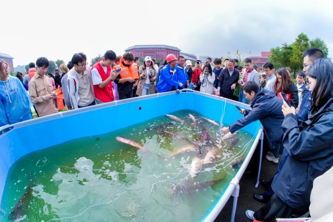为强化劳动教育,今年捕鱼节开放了100个劳动实践名额。“名额刚放出来,就被一抢而空了”。新鲜捕捞的“校庆鱼”,由现场参加劳动实践的同学们第一时间运送到校区餐厅加工,阳明湖边开展了一堂寓教于乐的劳动实践教育课。活动现场,海洋学院开展“渔乐小苑”科普展览,带同学们走近海洋、了解海洋,增强海洋生态保护意识。
