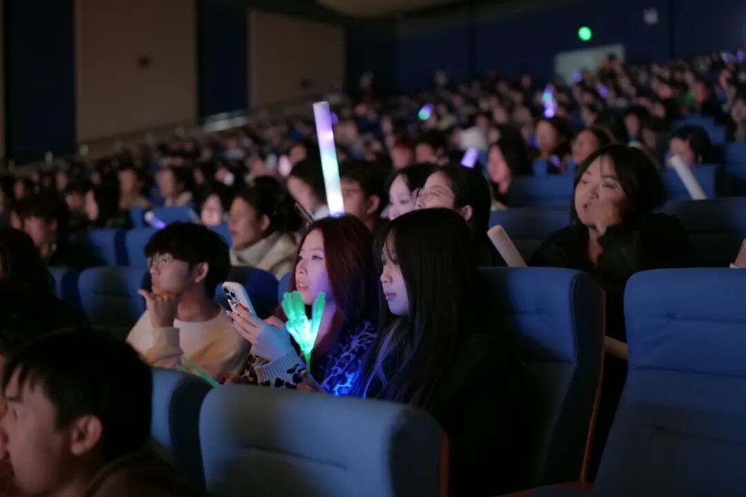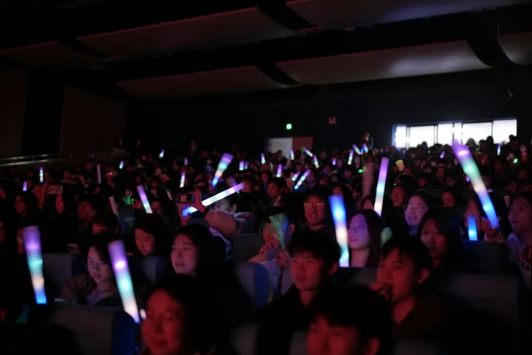 他们或挥舞荧光棒,或跟着节奏摇摆