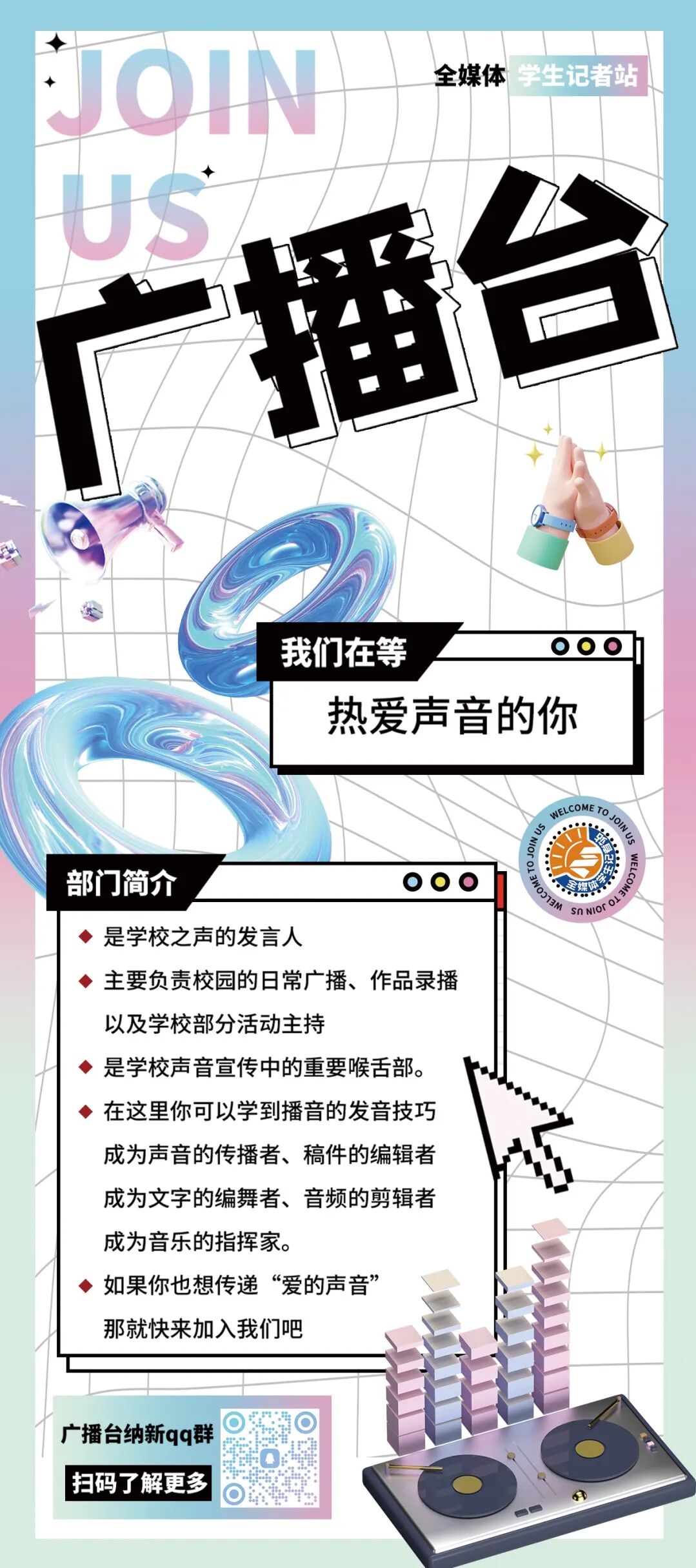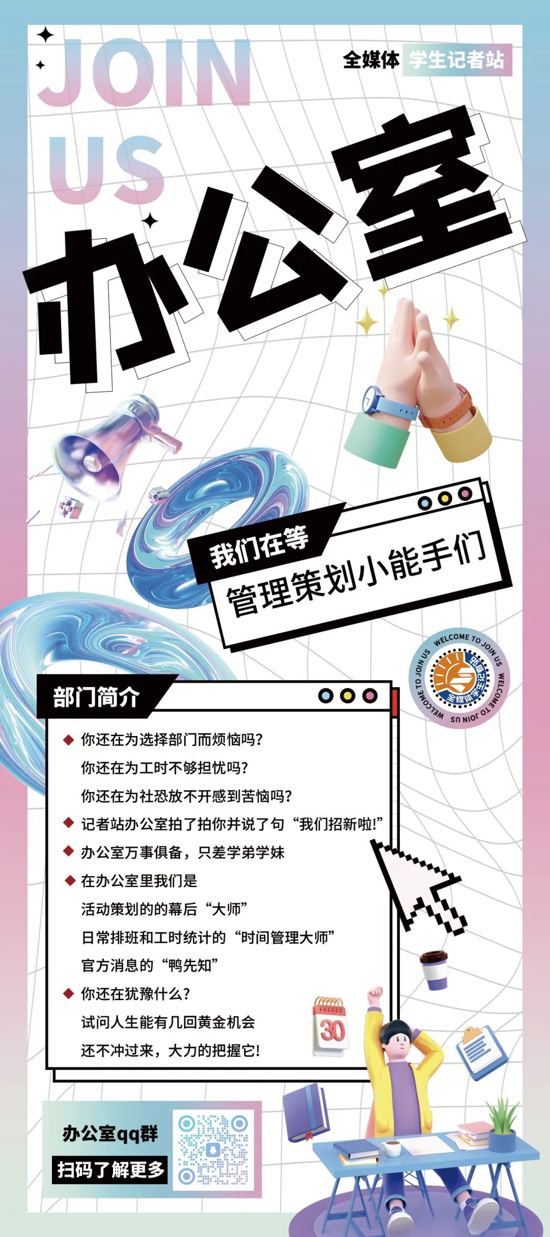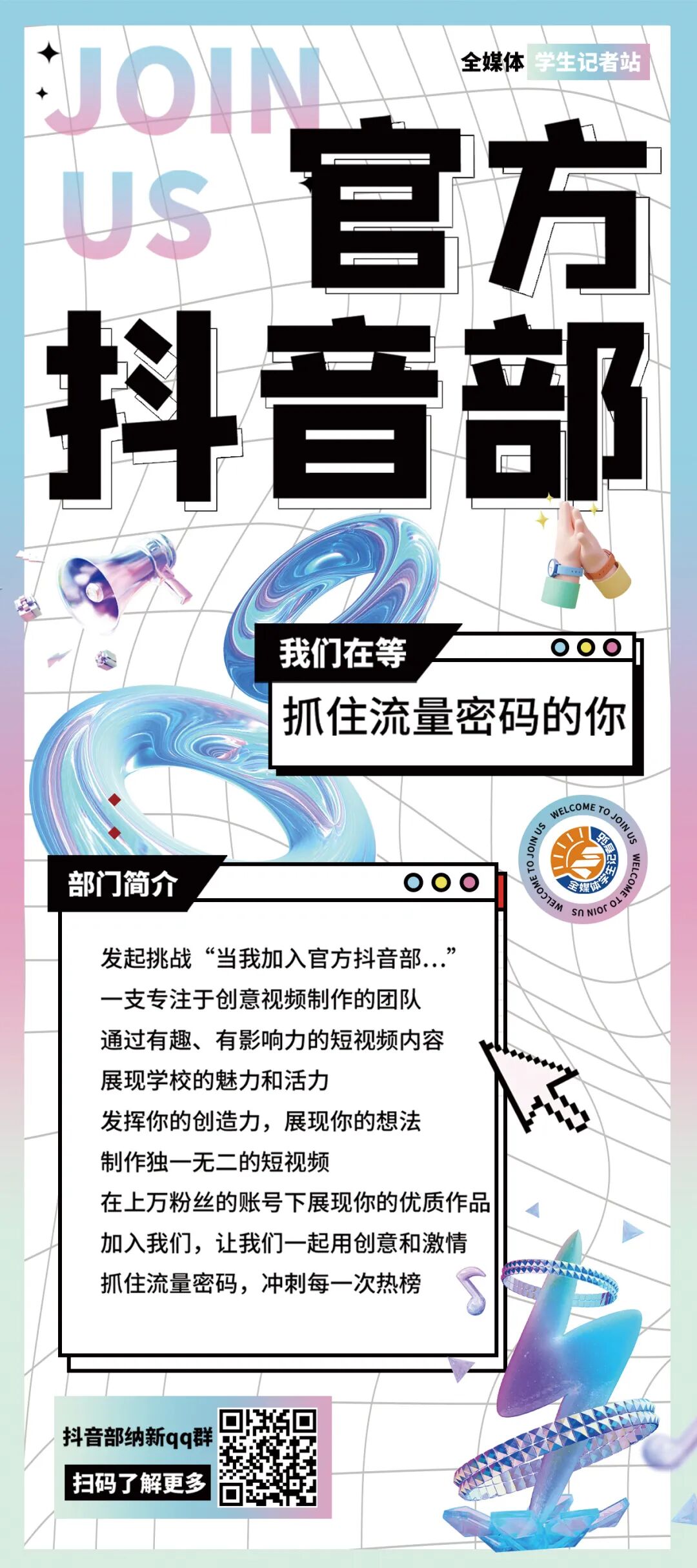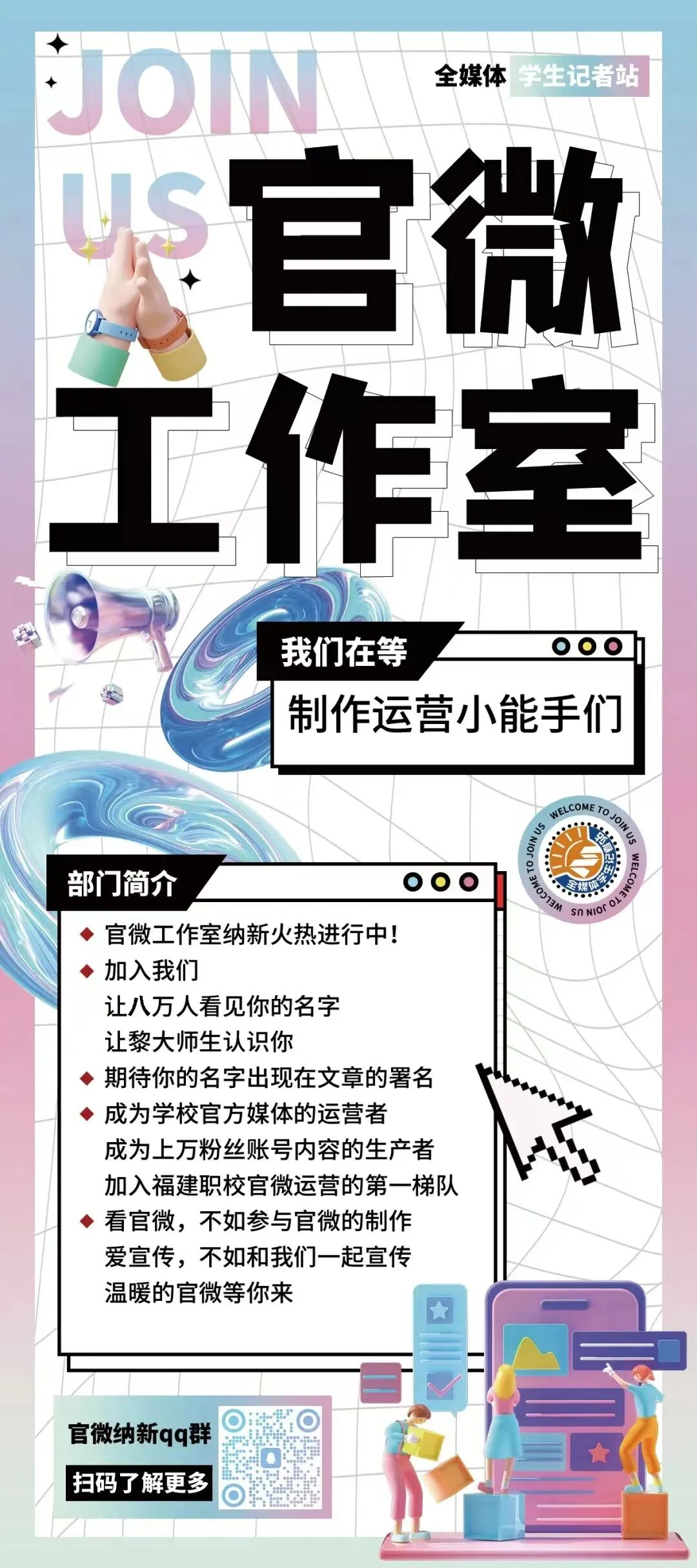 ↓QQ扫码加入八大部门纳新群↓