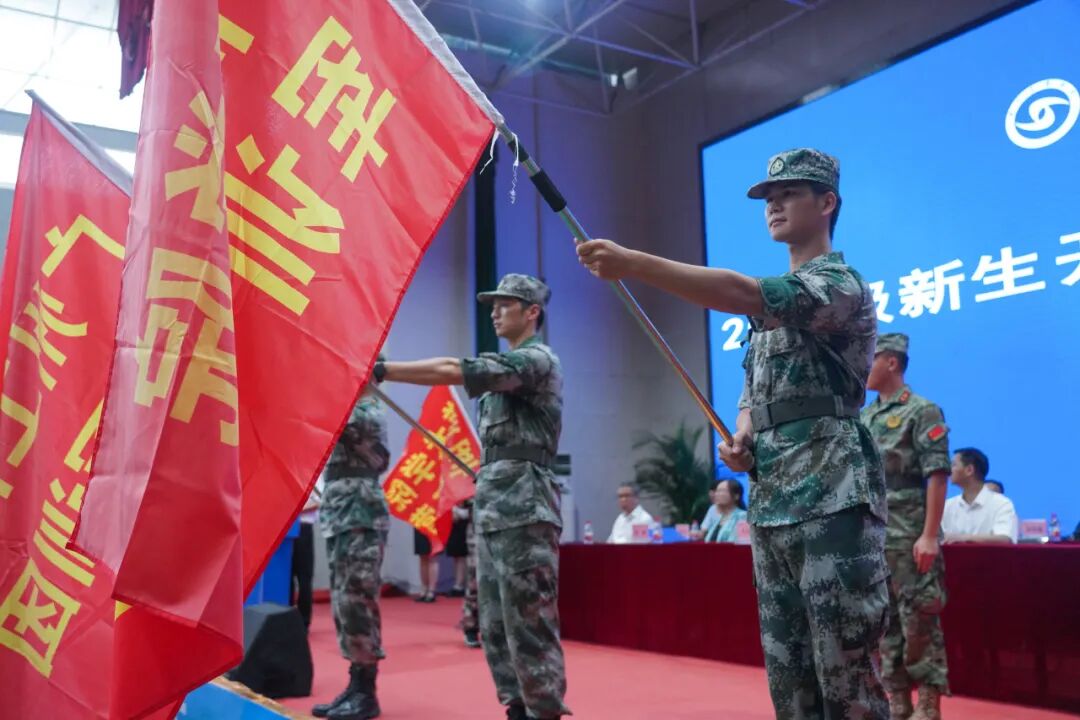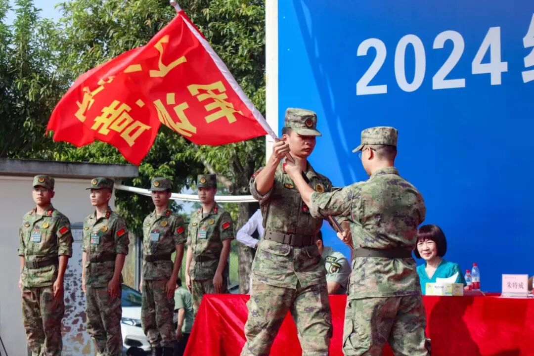 授旗仪式上,教官身姿挺拔,目光如炬,庄重地传递着手中的营旗,这一刻,青春与热血交融,誓言在心中回响,一段崭新的篇章正式开启!