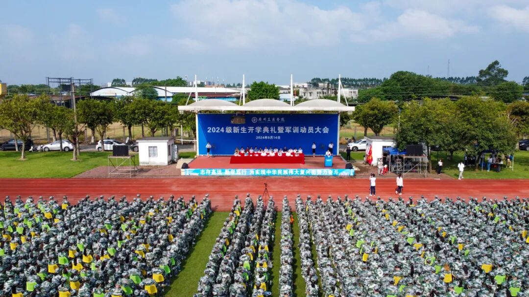 2024年9月14日,广州工商学院2024级新生开学典礼暨军训动员大会分别在花都校区和三水校区举行。学校校长王日华、党委书记张振超、副校长张辉、副校长易露霞、董事办主任陆志丹,花都区人民武装部部长凡华伟、副部长旷斌中校出席本次大会,相关教学单位、职能部门及军训团的领导,全体新生和老生代表到场参加。此次大会由我校党委副书记、纪委书记、副校长朱特威主持。