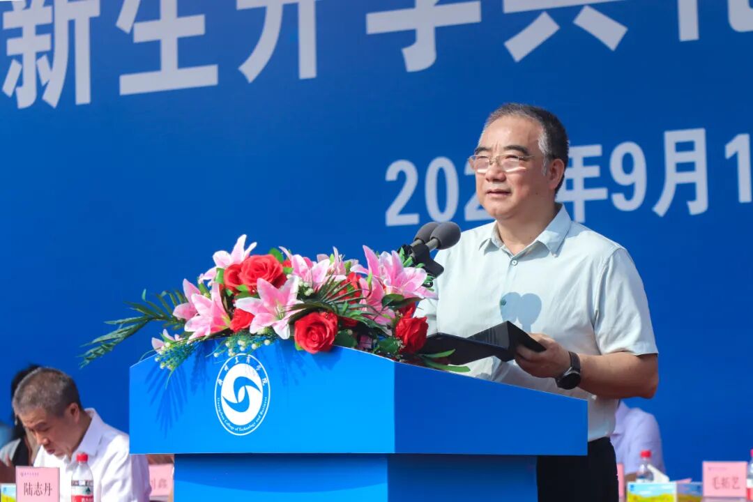 大会上,王日华校长热烈欢迎8000余名新生加入广州工商学院,并代表学校全体教职员工,向各位新“广工商人”表示热烈的欢迎和衷心的祝贺!并引用“大学之道,在明明德,在亲民,在止于至善”的古训,寄语新生们好好利用宝贵的大学时光,刻苦学习专业知识和技能,全面提升个人能力和素质,铸就堪当重任的“真本领”,传承“正德厚生、励志修能”的校训精神,追逐明德之光、勇担亲民之责、永怀至善之心,以满腔热情续写广工商人的精彩华章,以拼搏姿态投身中国式现代化的伟大实践。