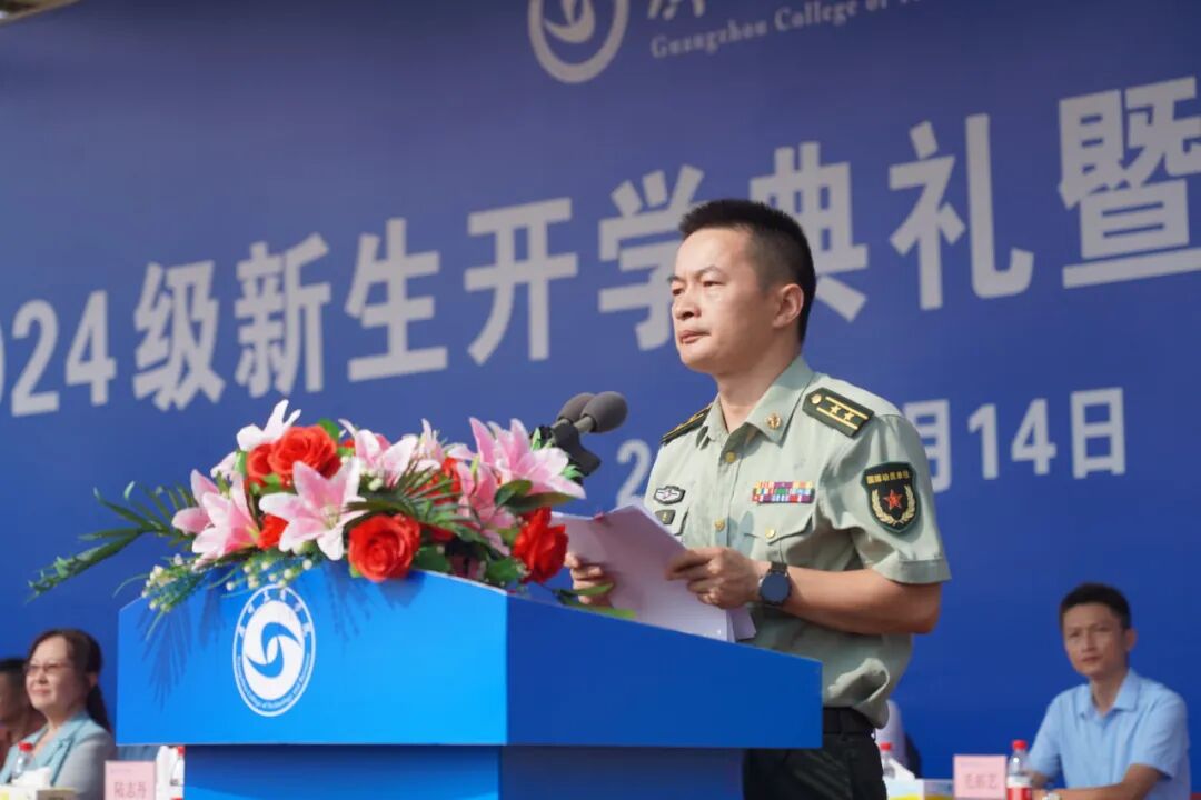 花都区人民武装部部长凡华伟上校向同学们提出三点希望:勇于吃苦、服从命令、珍惜机会。同时,对教官提出了科学组训、文明施训、遵规守纪的要求,确保军训安全顺利开展。他相信在多方努力下,此次军训定能圆满成功,并祝愿同学们学有所成,学校再创辉煌。