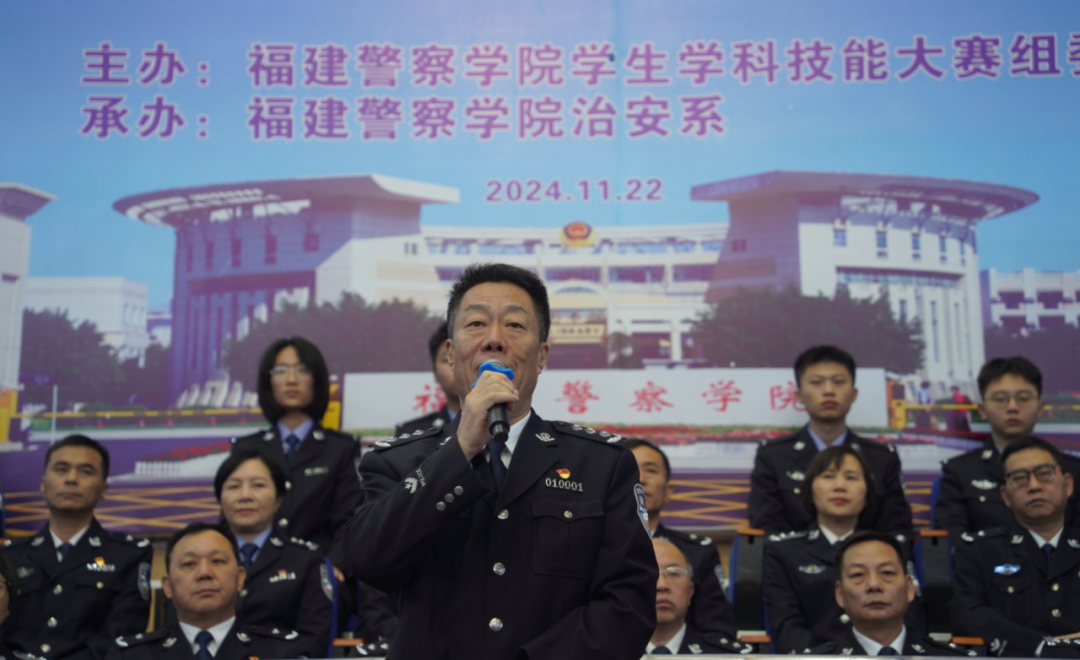 为深化“教学研练战”一体化人才培养模式建设,服务提升公安机关新质战斗力,我院举办第八届学生学科技能大赛。11月21日上午,大赛举行开幕式。学院党委书记游晔,院长胡宝珍,副院长陈万发,省公安厅教育训练处处长谢朱景,省司法厅人事处副处长谢锦杨,学院各部门负责人、师生代表参加。