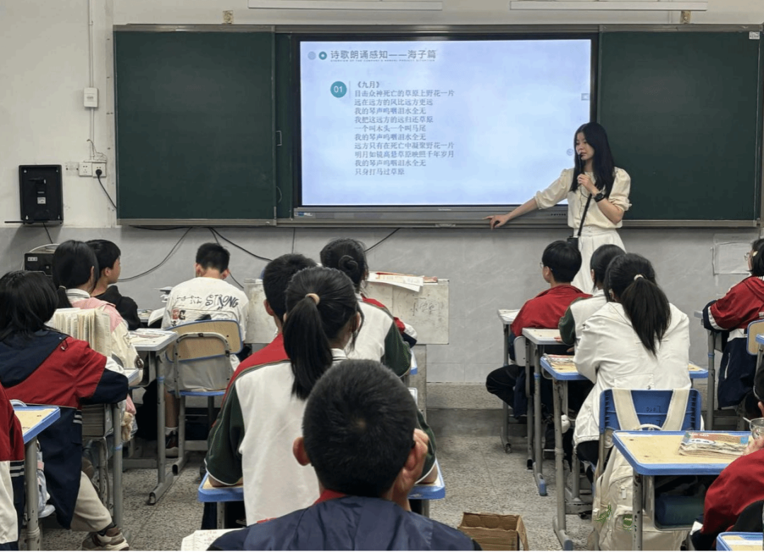 “朱老师,你一定要回来和我们一起拍毕业照啊!”“一定会的!”这是在支教结束、告别之际,我和学生们无数次的对话。这一年里,最让我感到幸福的是和学生们的沟通和相处。他们很体贴,会在说了一段重庆话后意识到我不能完全听懂,然后切换为普通话继续和我分享学习生活趣事;他们很热情,会在讲台旁围着我聊天,会在遇到我时满带笑容地大声喊“Miss Zhu”;他们很努力,会主动找我听写、背书和分析试卷……班上有个内向害羞的女孩,我常常在课堂上鼓励她发言。在家访时,她的奶奶开心地拉着我的手,一个劲儿地感谢我。我这才知道原来她小学时英语不是很好,英语课也听不懂。但是她觉得我的课很有趣,所以努力学习英语,成绩也不断提升。后来和她聊天,她说我在课上告诉他们学习英语并不是只为了考试,而是为了有更多途径了解世界,让她触动很深,所以不再排斥学习英语。这样的正向反馈让我更加愿意了解学生们,帮助他们更好地学习,鼓励他们不给人生设限,去更广阔的天地看一看。来到重庆之前,我没想到学生们与我之间的故事会成为我对这个城市的牵挂,并将激励着未来的我。我想我会一直关注他们,在背后为他们加油和祝福!张郁萱:总有几个瞬间告诉我做老师是值得的,这些瞬间都来自你们