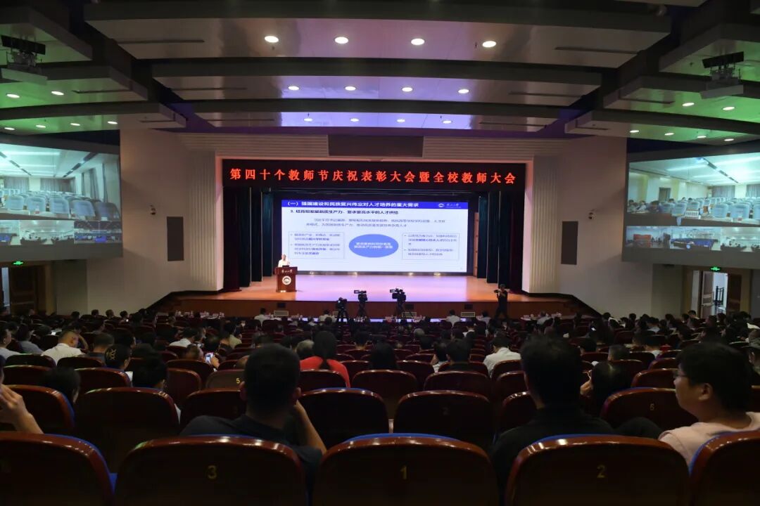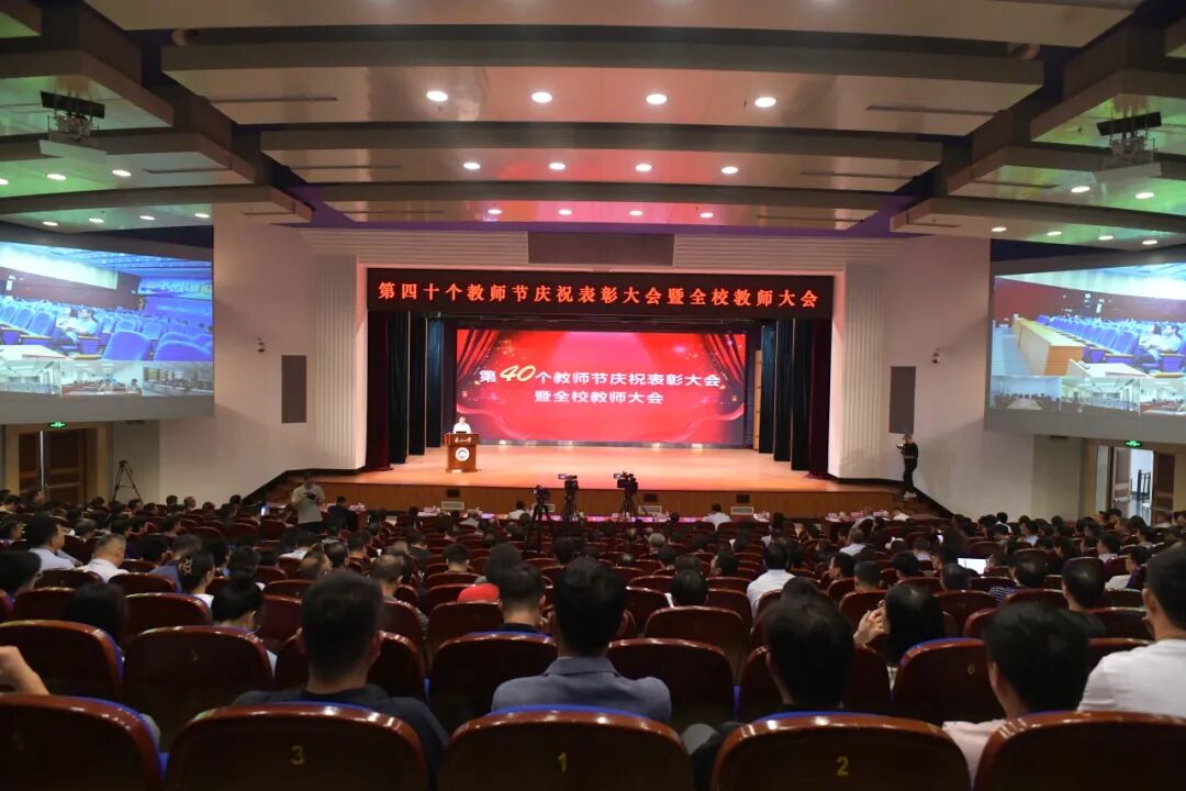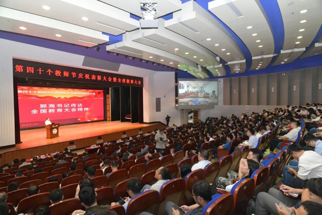 当日还召开了第四十个教师节庆祝表彰大会。会议重温习近平总书记重要回信精神,学习贯彻全国教育大会精神,表彰先进集体和先进个人,展示学校教师队伍建设的成就和广大教师“立德树人、追求卓越”的精神风貌,营造浓厚的“尊师重教、崇德尚学”校园文化氛围,引导广大教师自觉践行教育家精神,勇担教书育人使命,努力成为学生为学、为事、为人的大先生。