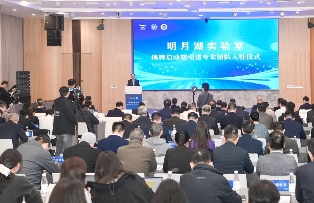 活动中,罗蔺、王树新、潘复生等共同为明月湖实验室(筹)揭牌。现场还为实验室新引进的4个院士团队、10个专家团队、8位首席专家分别授牌。