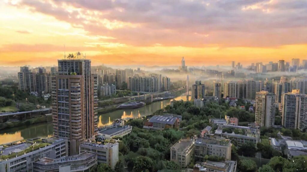 当傍晚的余晖洒在重大校园,