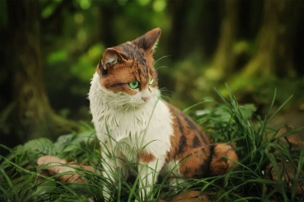 调皮的小猫此刻安静地蹲坐在黏土草丛中,