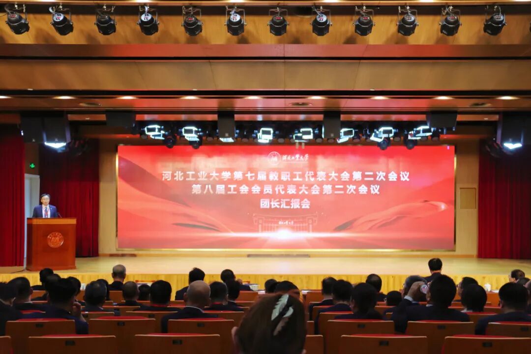 校党委副书记贺立军主持大会闭幕式。会议通过《河北工业大学第七届教职工代表大会第二次全体会议决议》(草案)、《第八届工会会员代表大会第二次全体会议决议》(草案)。决议认为,本次大会作出的各工作报告客观准确、实事求是,重点突出,充分肯定了学校在第七届教职工代表大会第一次会议以来各项事业取得的成绩,同时勇于正视问题不足,深刻分析了学校当前建设发展面临的困难和问题,明确了今后工作的指导思想和主要任务,符合实际,切实可行。决议号召,全校教职员工要更加紧密地团结在以习近平同志为核心的党中央周围,坚持以习近平新时代中国特色社会主义思想为指导,弘扬教育家精神、劳模精神、劳动精神、工匠精神,凝心聚力,奋发进取,朝着提高“双一流”建设成效和学校高质量发展目标扎实迈进,为奋力谱写教育强国建设崭新篇章作出新的更大贡献!