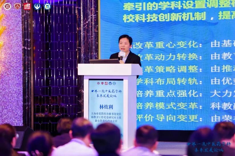 为深入学习贯彻党的二十届三中全会精神和全国教育大会精神,坚持教育、科技、人才“三位一体”协同融合发展,加快推进世界一流中医药学科建设,奋力书写建设教育强国支撑引领中国式现代化的新篇章,11月30日,由上海中医药大学、北京中医药大学、上海软科教育信息咨询有限公司联合主办的世界一流中医药学科未来发展论坛在上海召开。北京中医药大学校长唐志书、上海中医药大学校长季光、广州中医药大学校长王伟、成都中医药大学校长余曙光、南京中医药大学校长程海波、天津中医药大学校长高秀梅、浙江中医药大学校长陈忠、安徽中医药大学校长许钒、河南中医药大学校长王耀献和湖北中医药大学校长陈刚,上海市教卫工作党委一级巡视员郑锦,上海市委教育工作领导小组秘书处处长、市教卫工作党委研究室主任、市教委综改办主任林炊利,中国科学院院士林国强等出席,共商世界一流中医药学科未来发展。