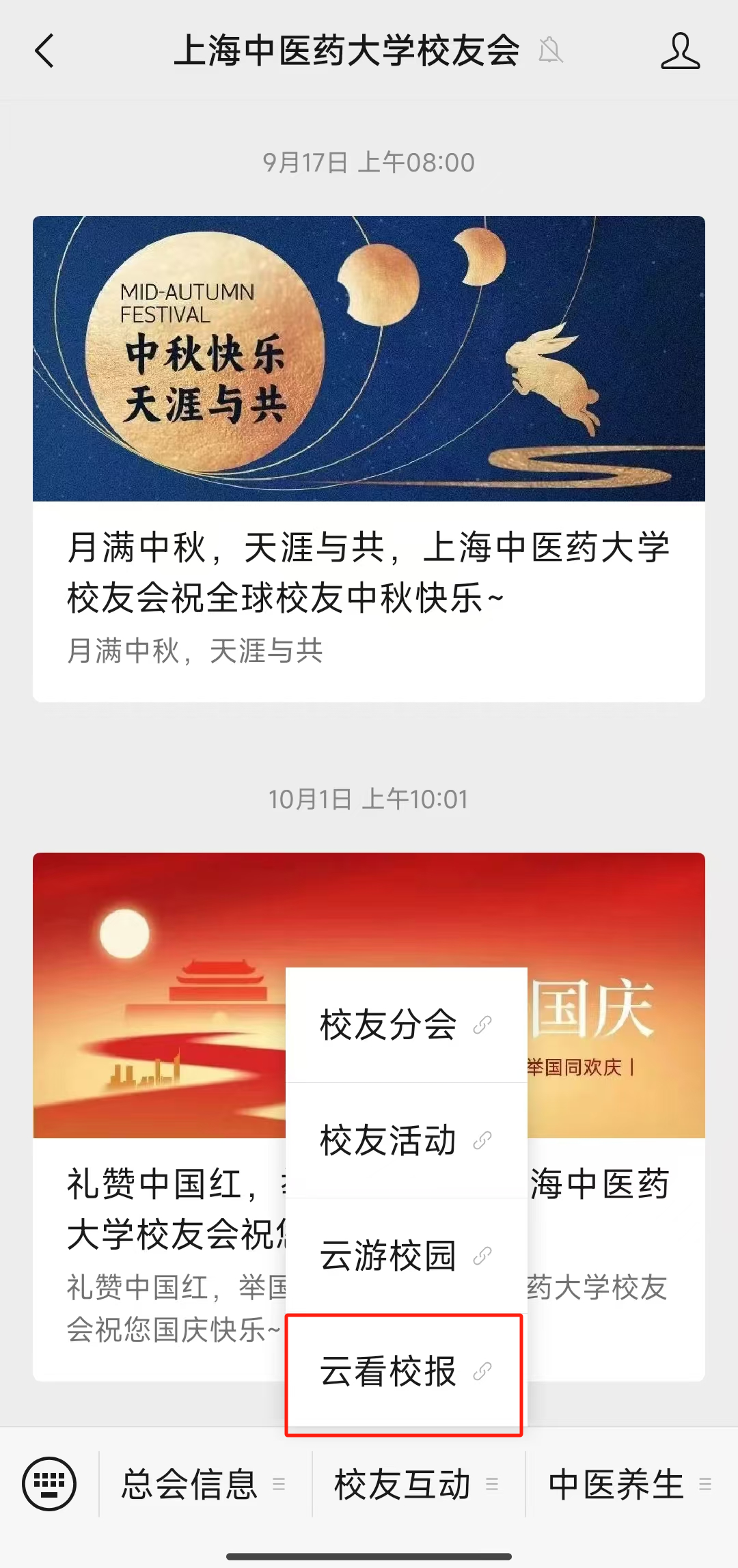 上海中医药大学校友会微信公众号