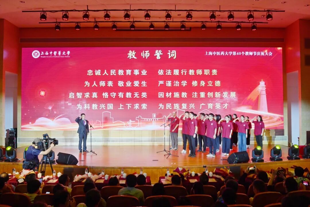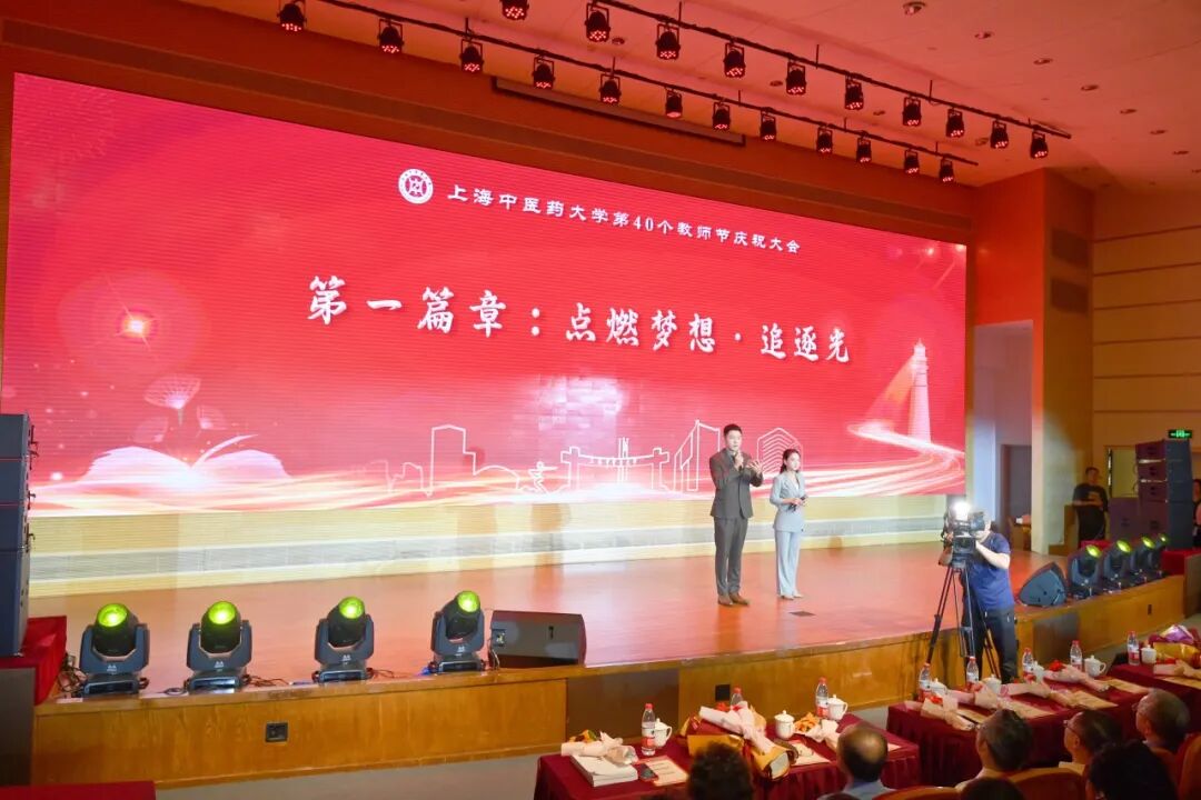 9月9日,第40个教师节前夕,上海中医药大学聚焦“大力弘扬教育家精神,加快建设教育强国”主题举办教师节庆祝大会。大会分为《点燃梦想·追逐光》《铸就辉煌·成为光》《薪火相传·散发光》三个篇章,通过情景表演、故事讲述、对话朗诵等形式,呈现了学校系统教师们在育人方法探索、引领学生成长、师道精神传承等方面的生动实践。