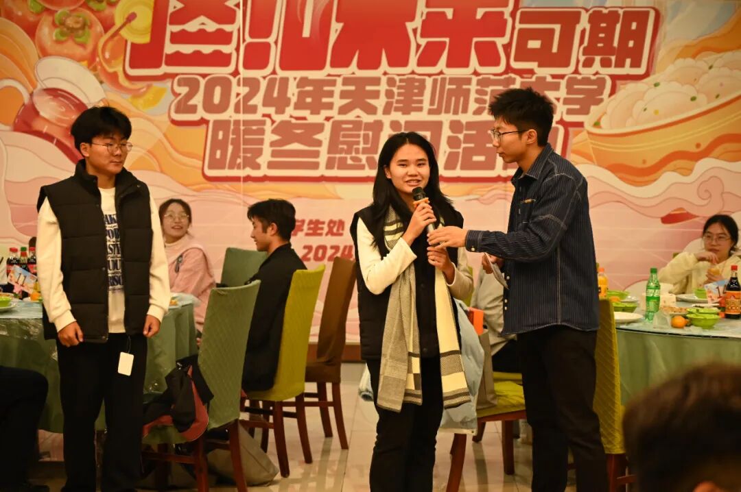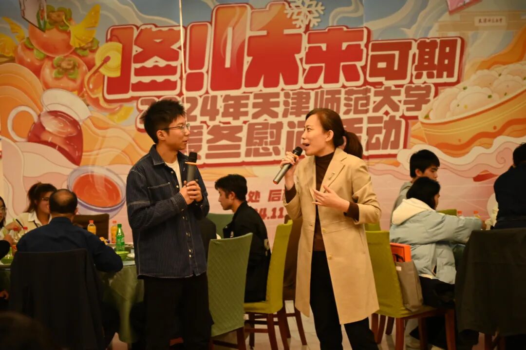后勤管理处处长王欣、党委学生工作部部长李青作为教师代表为同学们送上暖冬祝福,鼓励同学们在“师大之家”汲取自强不息、乐观向上的正能量,不惧风雨、不畏艰难,用踔厉奋发、笃行不怠的实际行动成长为优秀的师大人。