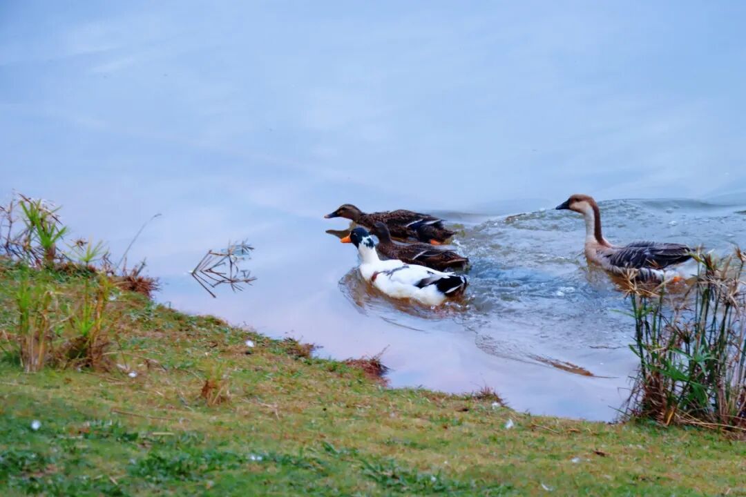可爱的鸭子悠然戏水