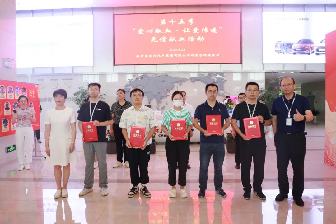 东风汽车研发总院党委书记、副院长唐竞,党群工作部部长汪波,团委书记兼数字化及能力保障部副总监崔雨心、团委副书记肖翔,武汉血液中心党委委员、副主任杜思颖,武汉市经开区卫健局医政科主任袁汉武,出席无偿献血活动启动仪式。来自武汉市的白衣天使、长江日报的志愿者、受表彰的武汉市无偿献血先进个人等参加仪式。十五年来,研发总院累计献血人数超过1400人次,献血总量约32.8万毫升,多次荣获“武汉市无偿献血先进单位”,并斩获“湖北志愿服务大赛银奖”。这不仅是荣誉的象征,更是研发总院每一位员工对社会责任的担当与践行,彰显东风作为在鄂特大型央企的博大胸怀与深厚情怀。▲现场,武汉血液中心为研发总院颁发“2023-2024年度武汉市无偿献血爱心单位”称号▲活动为“2023-2024年度武汉市无偿献血志愿服务公益活动先进个人”颁奖▲活动为“2023-2024年度武汉市无偿献血志愿服务公益活动积极分子”颁奖无偿献血活动延续到了第15年,这不仅是研发总院履行社会责任的体现,更展现了广大职工尊重生命、无私奉献的崇高精神。希望无偿献血活动长期坚持下去,也希望更多年轻人参与其中,为履行好社会责任、为更好地救死扶伤贡献力量。