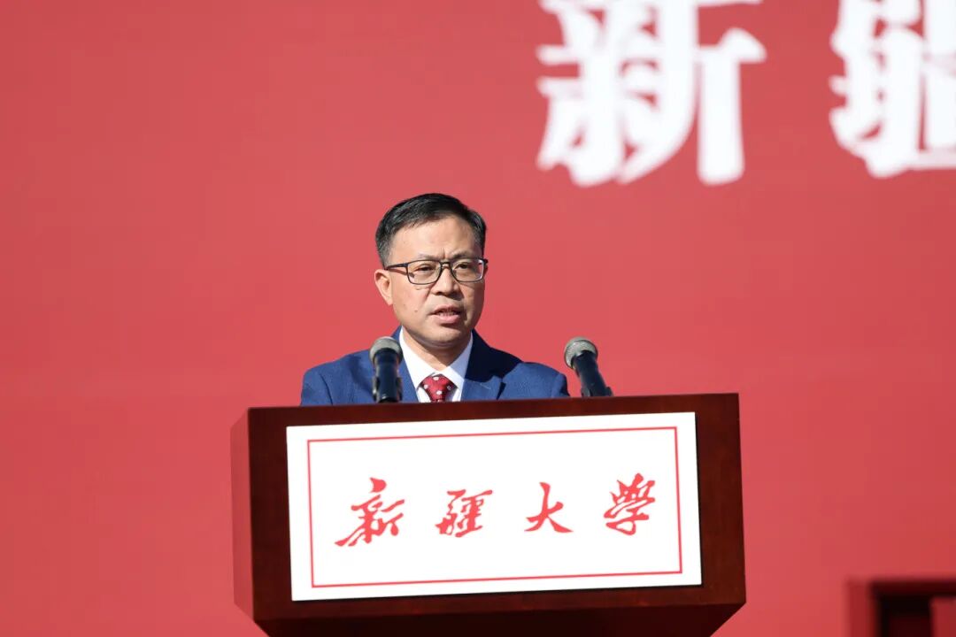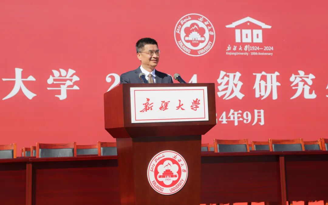 代斌向来自全国各地的5583名研究生新同学表示热烈欢迎,祝贺他们再一次脱颖而出,在新疆大学开启新的求学之路。代斌指出,习近平总书记在考察调研新疆大学时,勉励同学们“做为中国特色社会主义、为中华民族努力奋斗的一代青年。”这是广大青年的光荣使命,更是广大青年成长发展的应有价值选择。代斌向同学们提出三点希望。一是厚植家国情怀、坚定理想信念,在强国建设中勇担时代使命。希望同学们传承红色基因、厚植家国情怀,胸怀“国之大者”,敢于担当、善于作为,攻坚克难、勇于攀登,为实现高水平科技自立自强和建设中华民族现代文明作出应有贡献。二是牢记殷切嘱托、锤炼过硬本领,在开拓创新中展现青春担当。希望同学们时刻谨记习近平总书记的殷殷嘱托,既要胸怀大志,也要脚踏实地。在学习和科研中,掌握科学研究方法,不断提升自身学术素养和综合能力,在学术道路上走得更稳、更远、更好。三是坚持崇德修身、涵养高尚品格,争做全面发展的时代新人。希望同学们坚持立德为先、修身为本,在做好学习科研的同时,练就强健体魄、磨炼坚强意志,增强文化自觉、坚定文化自信,努力成为德智体美劳全面发展的社会主义合格建设者和可靠接班人!代斌号召同学们在新疆大学这片热土上,传承红色基因、赓续红色血脉、厚植家国情怀,以坚韧不拔的决心和意志,不断锤炼本领,促进全面发展,为建设教育强国、科技强国、人才强国,实现中华民族伟大复兴的中国梦贡献青春力量。