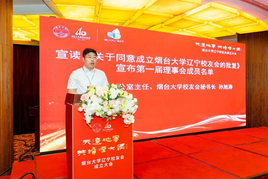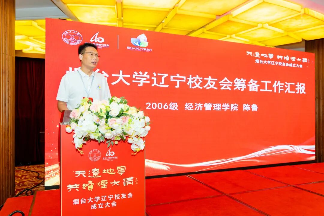 经管学院2006级校友陈鲁代表烟台大学辽宁校友会筹备委员会作筹备工作报告。校友工作办公室主任、烟台大学校友会秘书长孙旭涛宣读《关于同意成立烟台大学辽宁校友会的批复》并宣布辽宁校友会理事会主要成员名单。党委常委、组织部部长、数学与信息科学学院院长杨玉军向沈阳市、大连市校友代表授烟台大学校友会“校友之家”牌匾。