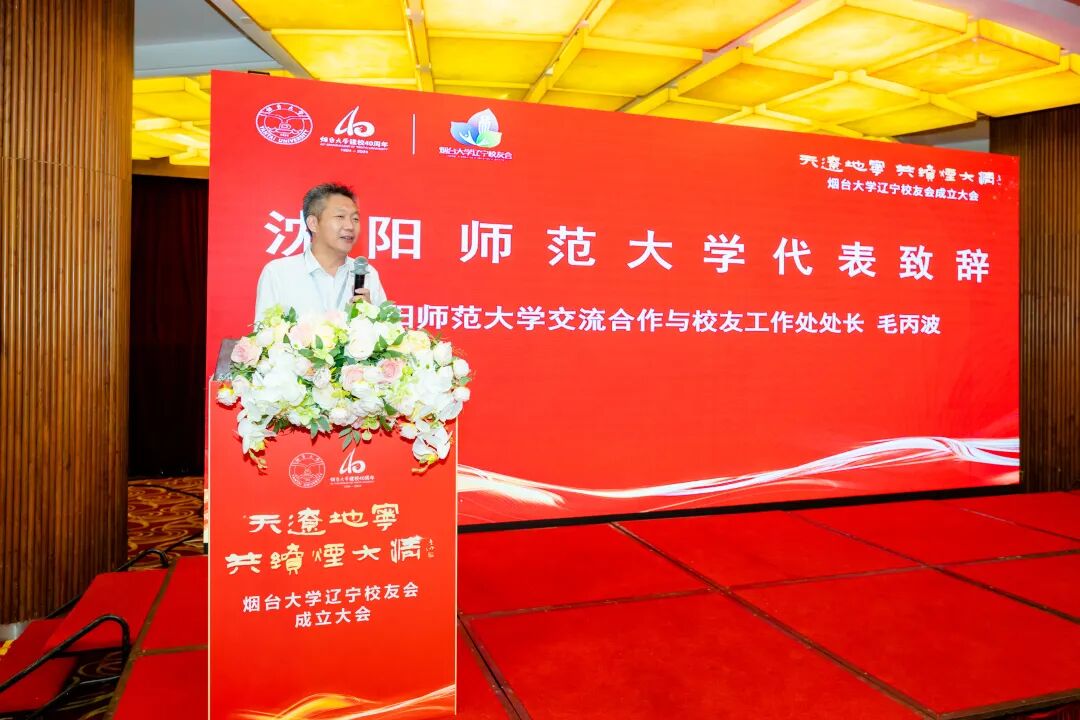 沈阳师范大学交流合作与校友工作处处长毛丙波、沈阳北京大学校友会秘书长卢正川、辽宁省山东企业商会秘书长梅全喜分别代表兄弟高校、兄弟高校校友会、商会致贺词。