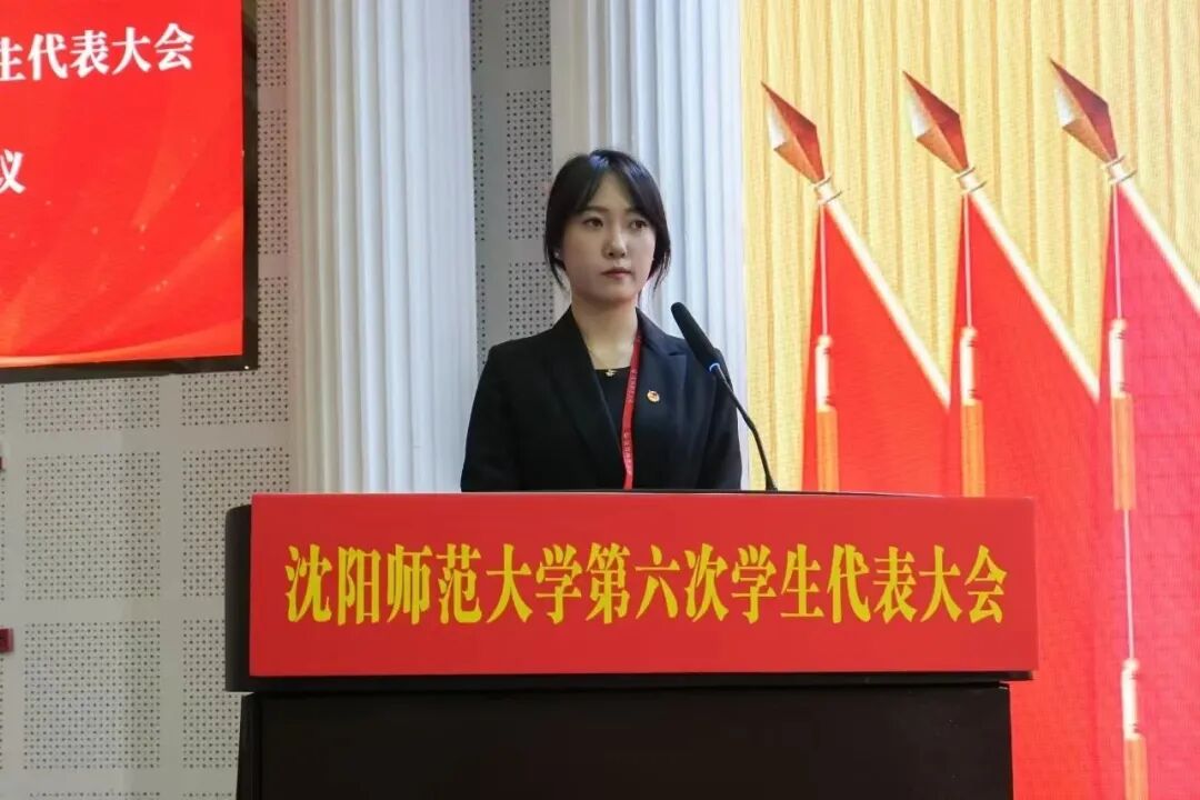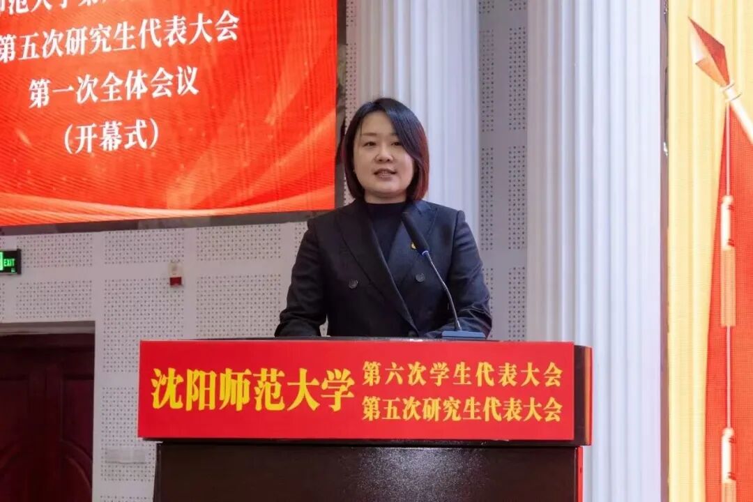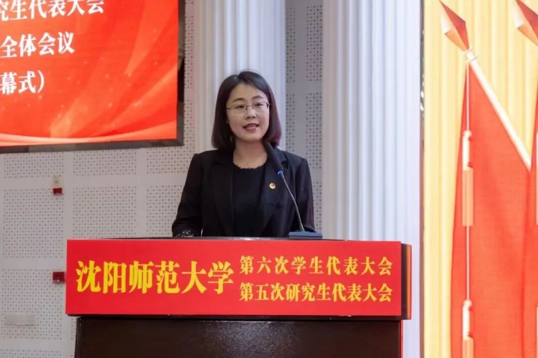 刘君杰在大会上致辞。她充分肯定了校学生会、研究生会一年来取得的丰硕成果,勉励与会代表牢记服务同学宗旨,切实维护学生权益,谦虚谨慎、艰苦奋斗,敢想敢为、善作善成,团结带领广大沈师学子做有理想、敢担当、能吃苦、肯奋斗的新时代好青年,不忘跟党初心,牢记青春使命。