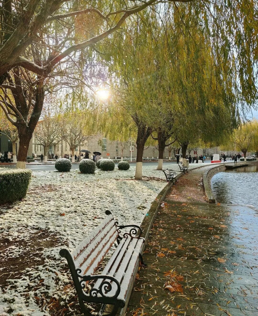 工大的眼眸,学位湖,似乎也不甘于平凡。雪花簌簌飘落,似天庭洒下的银屑,未及消融便成了冰面的花钿。此刻它冰封了时光!