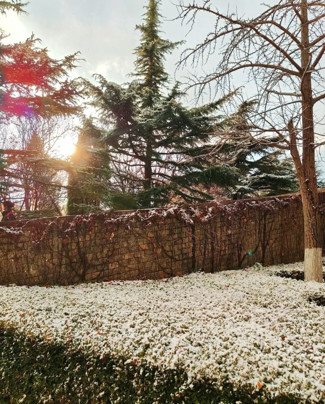 道路旁的银杏树,夏日里是葱郁的翠伞,此刻却成了琼枝玉干。扇形的叶片早已被雪掩埋,细密的雪丝在枝干间缠绕、凝结,在风中微微颤抖,抖落点点星芒。树下的草坪,仿若毛茸茸的白色毡毯,偶尔几处凸起,是雪下未眠的草芽,正做着关于春的绮梦。