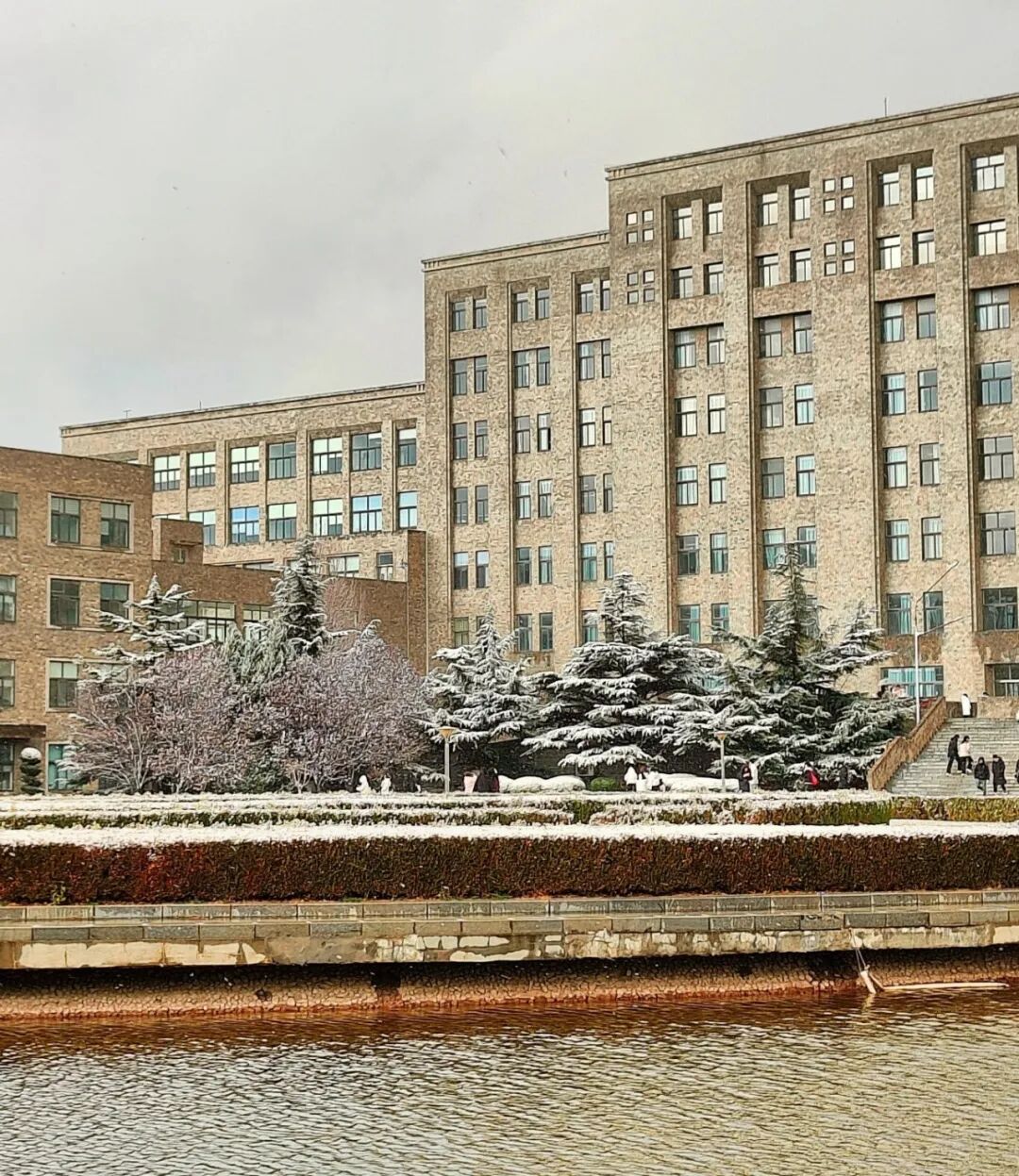 在这白茫茫的世界里,图书馆的飞檐斗拱,在雪中宛如展翅欲飞的玉凤。综合楼间,雪在角落堆积。同学们在室内书声琅琅,而窗外的雪却在静静陪伴。求学的道路漫长而艰辛,如同这冬日的寒冷,但工大的师生们在这冰雪天地里,依然坚守初心,用热情与执着,在知识的海洋里破冰前行。