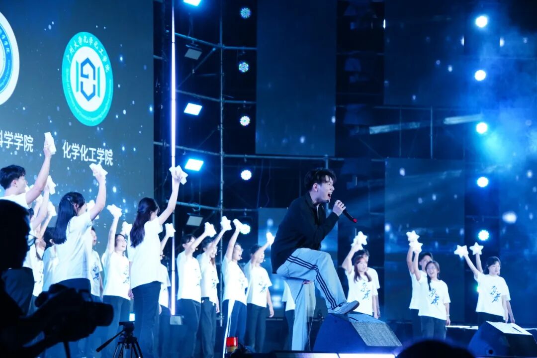 校党委书记欧阳谦、副校长张其学、校纪委书记陈晓晖、副校长何晓晴出席晚会,学校职能部门、各学院负责人,教师代表,和2024级全体本科、研究生新生等一万两千余人一同观看晚会。晚会正式演出直播突破新高,共计5.7万人次观看,26.8万点赞。