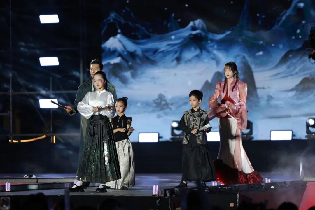 在这个充满神秘与魅力的夜晚,我们进入侠影神韵的世界,在这里,我们感受侠客的英姿飒爽,魔术的神秘艺术,声音的心灵传递。模特身着新中式的国风服饰,手持刀剑,自信张扬。魔术师出神入化的戏法神乎其技,以精巧构思生动传达学子们的爱国心声。配音演员用声音传达故事,触动人们心灵,鼓励我们勇于追求爱与正义,不怕苦不怕累,前方路已光明。