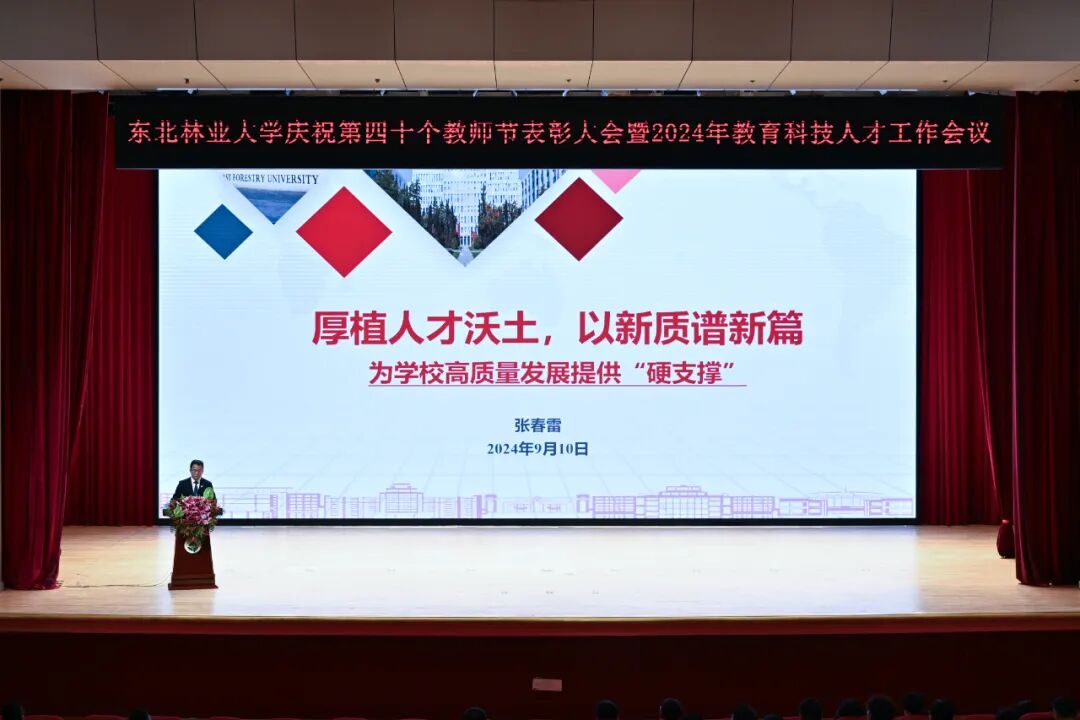 今天,是我国第40个教师节,今年,是我校由“东北林学院”更名为东北林业大学的第四十个年头。为了隆重庆祝第四十个教师节,进一步弘扬尊师重教的良好风尚,增强广大教师和教育工作者教书育人的荣誉感和使命感,学校隆重举行教师节表彰大会暨教育科技人才工作会。