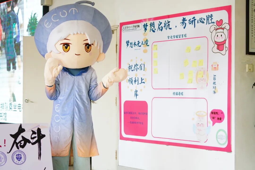在图书馆旁设立一面打卡墙,考生可以在自己的目标院校下面签名或者写下一些为自己加油打气的祝福语,并可合影留念。