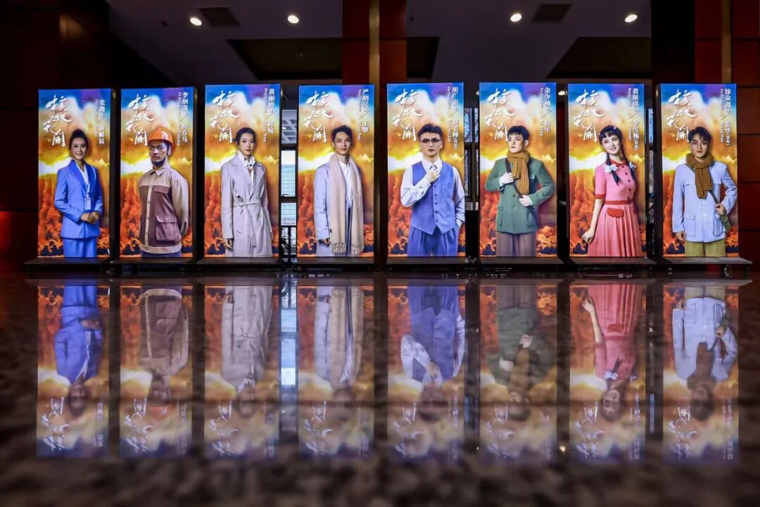 据悉,该剧在音乐阐述方面,融合了音乐剧宣叙调手法与流行音乐元素,打造出既符合现代审美又充满戏剧张力的音乐效果。在舞美设计方面,以“铀”元素为核心,通过环状“U形”矿石意象和充满年代感的立面墙壁,营造出多样化的舞台空间。灯光设计,一方面渲染了环境氛围,细致刻画人物形象,特别是在重点唱段和情绪高潮时,用辉煌的色彩和亮度照亮主人公的精神世界。同时,通过视频影片实现舞台空间的延伸,为观众呈现了一场视觉盛宴,加强了舞台的层次感和立体感。