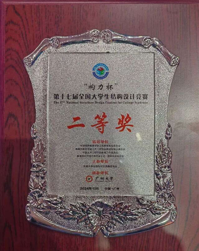 11月10日,“构力杯”第十七届全国大学生结构设计竞赛总决赛在广州圆满落幕。东华理工大学土木与建筑工程学院2022级“钱七虎班”李志勇、城市地下空间工程专业文欣瑞、王梓淏组成的学生代表队荣获全国二等奖(指导老师:杨勇、程丽红)。