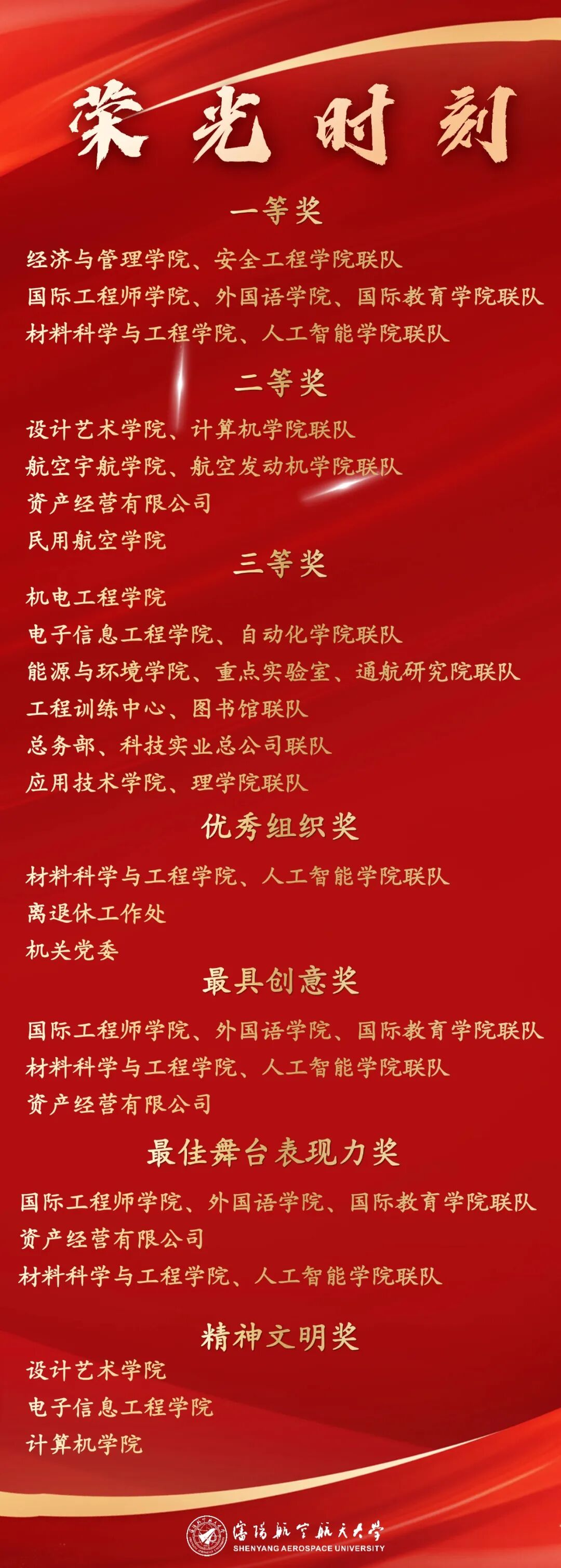 电子信息工程学院与自动化学院的青年学子,以《天耀中华》与《强国一代有我在》的豪情,宣告着属于他们的时代。他们的歌声,如同号角,唤醒了每一个沈航人内心的激情,激励着青年一代,以梦为马,不负韶华。