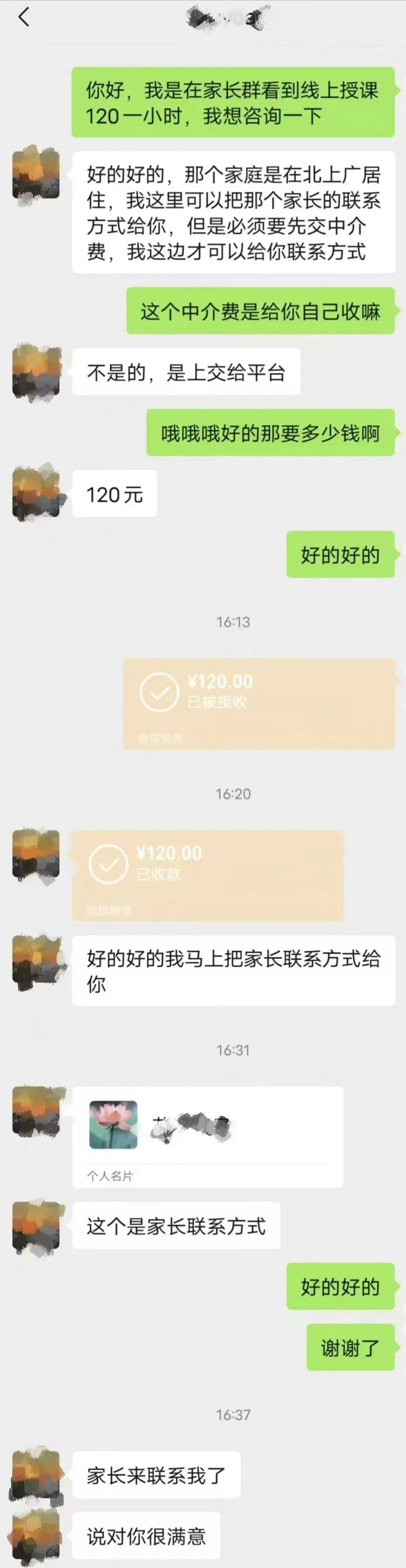 小丽想做家教兼职赚点钱,特意找了“正规家教中介”。线上授课120元一小时的工资让她十分心动,立马就联系了家教中介……