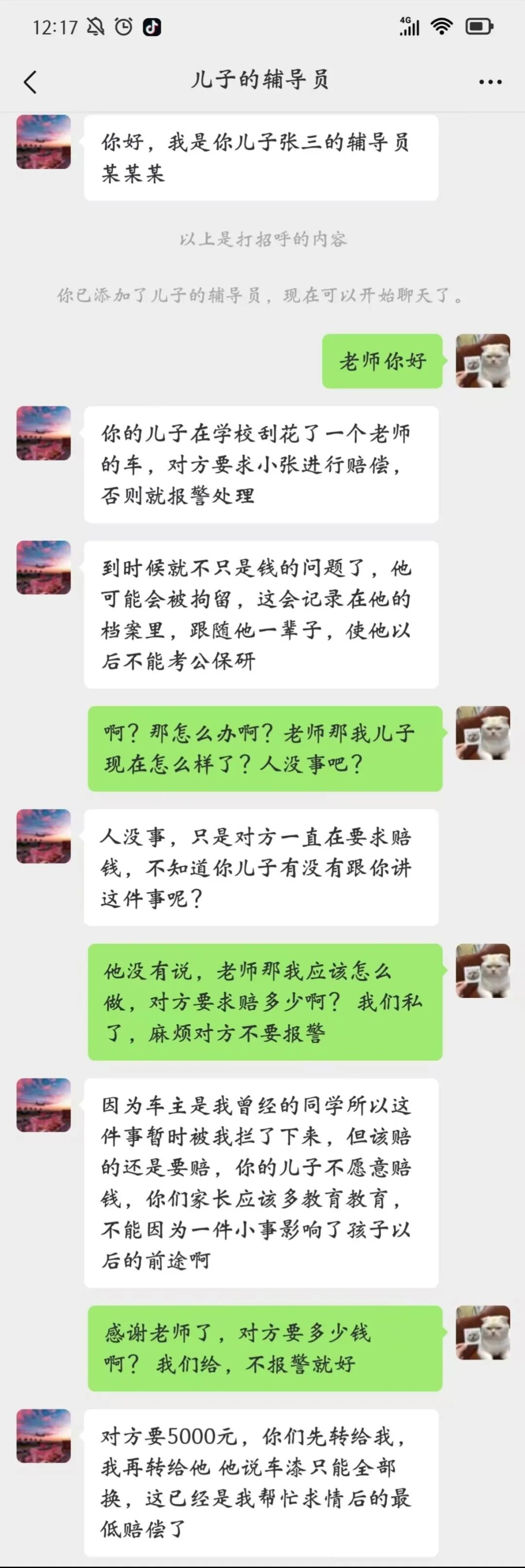大学生离家求学后,与家长的联系不可避免地会减少。张三同学的家长在一天收到了辅导员的好友通知,并得知自己孩子刮花了老师的车!这可怎么办才好……