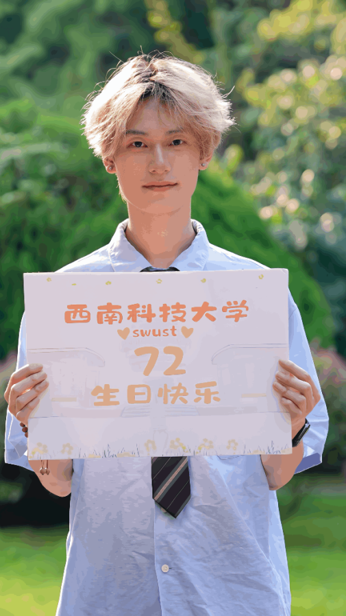 七十二载风雨兼程,学校见证了无数梦想的起航与实现,也培育了一代又一代的优秀人才。在这个特别的日子里,我想对学校说一声:生日快乐!感谢您为我们提供了如此优越的学习环境和丰富的资源,让我们能够在这里茁壮成长,追逐自己的梦想。最后,再次祝愿西南科技大学七十二周年校庆圆满成功,愿学校的明天更加美好!
